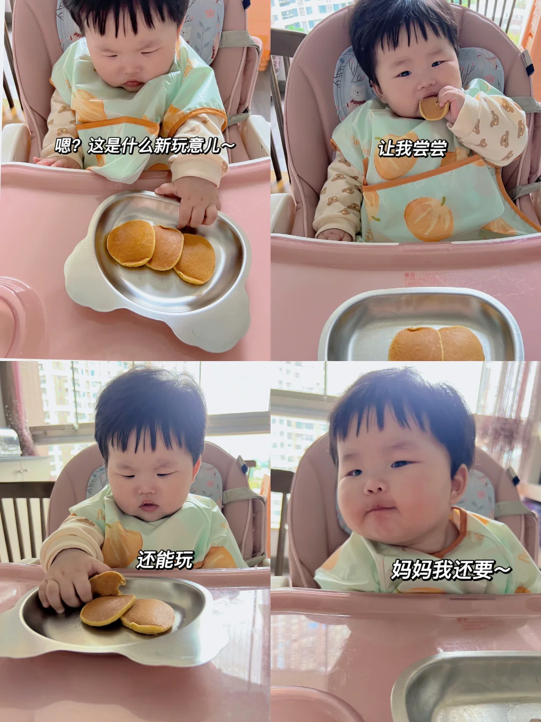 柒柒先吃的苹果松饼,第一次吃很好奇,吃着吃着还玩起来了哈哈,面条全部吃完啦,吃完喝了40ml水,午睡起来后吃了火龙果咬咬乐✅