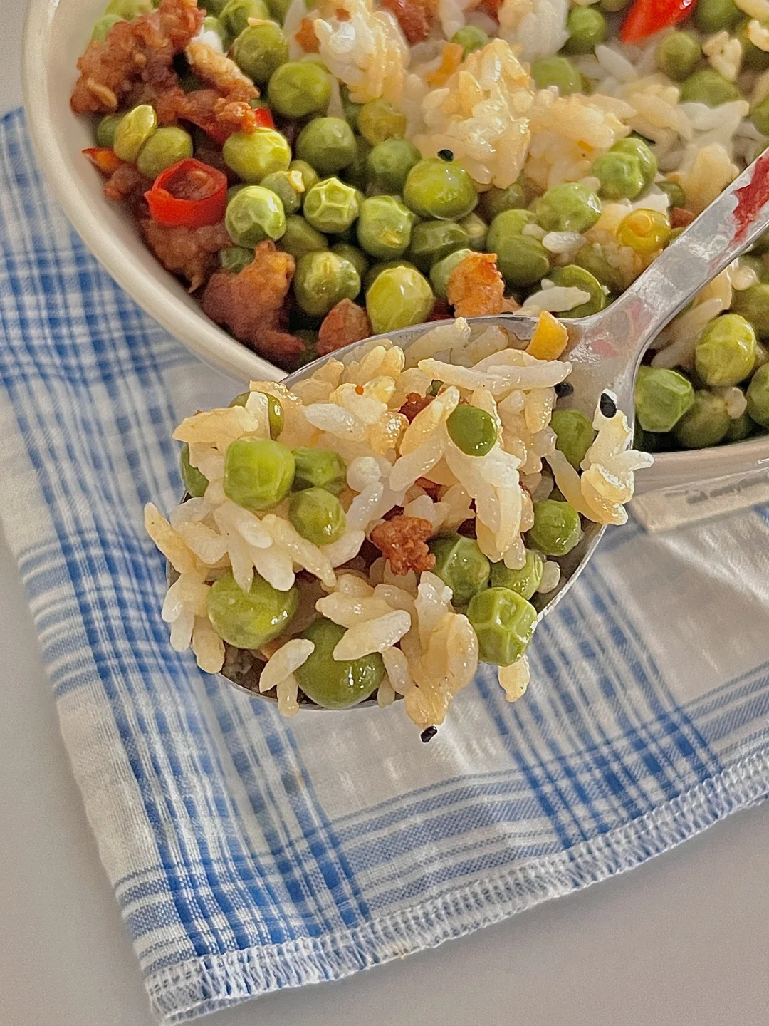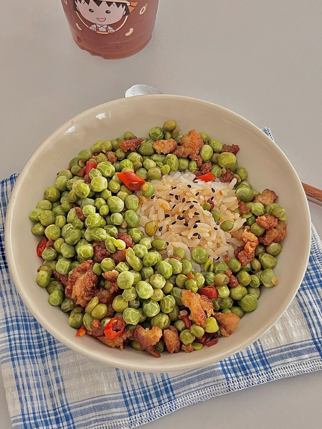 自家种的豌豆,特新鲜 做了下饭的豌豆肉沫 特意加点水多点汤汁,淋点汤汁和米饭拌着吃香晕~简单又不简单的一碗饭 把自己香迷糊了~特下饭! 食材:豌豆🫛肉沫 小米辣 蒜末 🍳做法看图片⬆️ 快去试试吧~