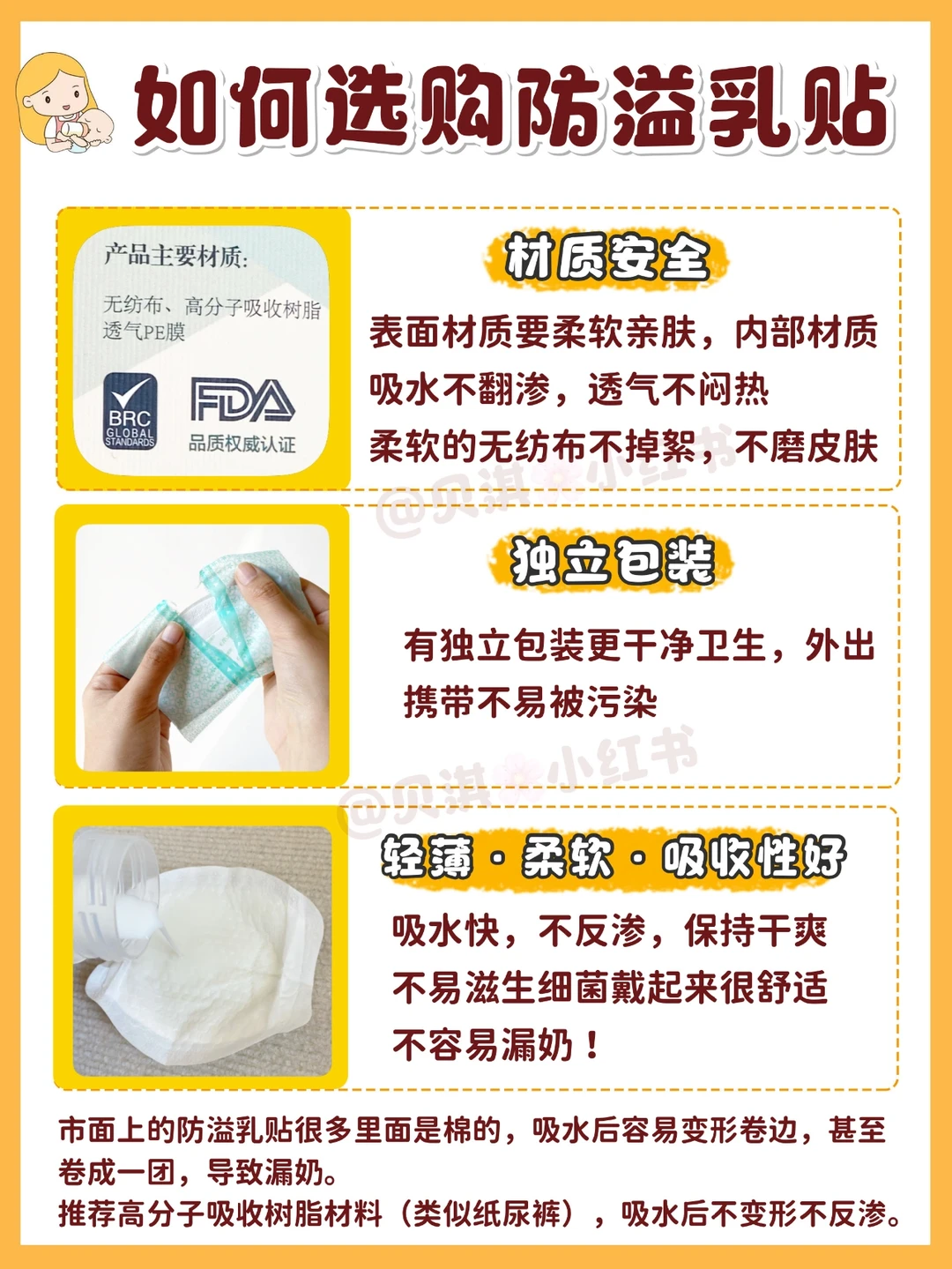 🔹抛开使用方法错误,也可能是选的防溢乳垫不适合~作为母乳喂养了3年的人🤗今天就来教大家如何选对不选贵!记得码好~