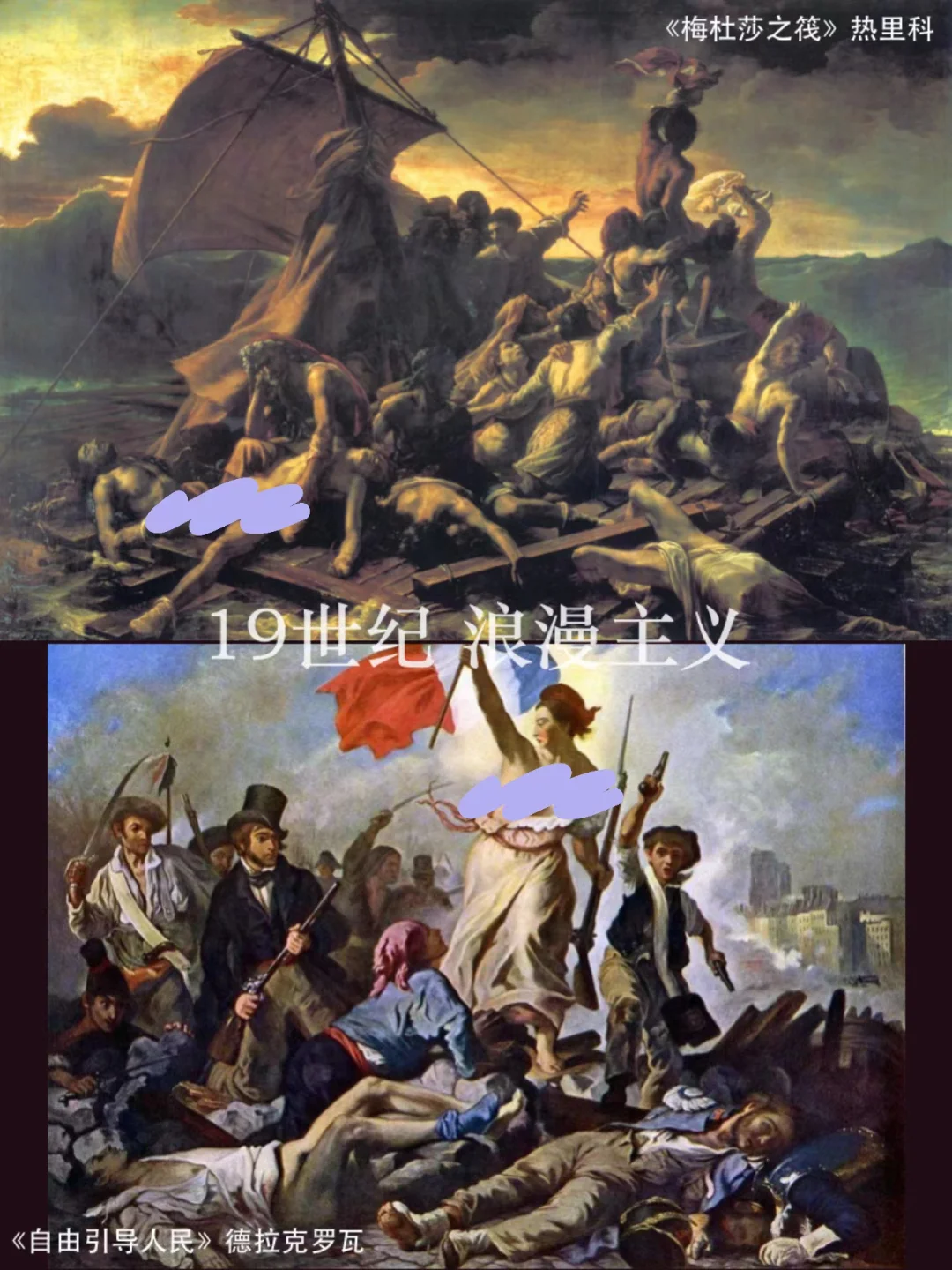 -这其中就有浪漫主义画派,它属于情绪流,比如热里科的《梅杜莎之筏》,德拉克罗瓦的《自由引导人民》,都能让人从笔触中感知到深刻情感。