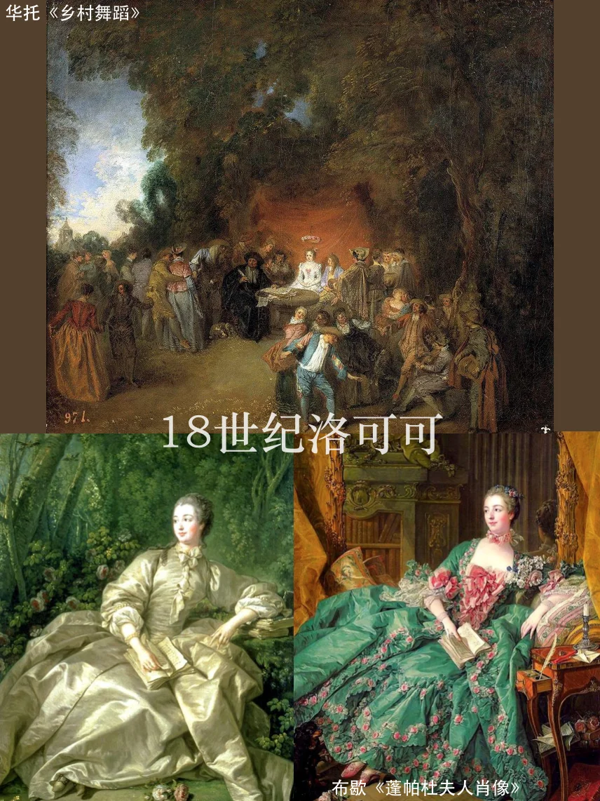 🔸到了18世纪,受够了凡尔赛宫巴洛克风的贵族们,开始爱上轻柔甜美的洛可可风,华托、布歇为其中的代表画家。