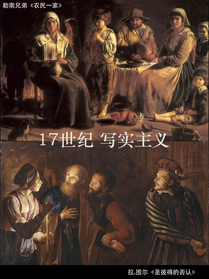 -同一时期,写实主义也很流行,勒南兄弟、拉图尔都善用光线,呈现暗调环境中的人物张力,很有卡拉瓦乔的感觉。