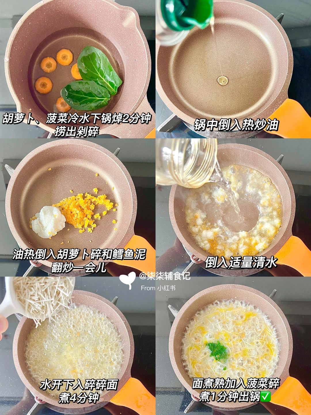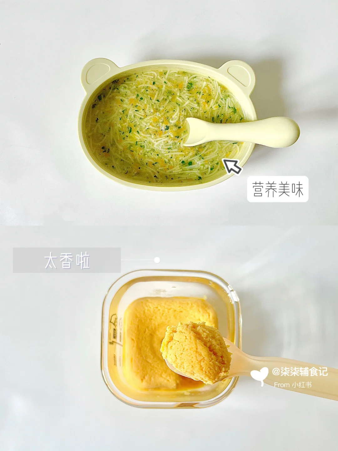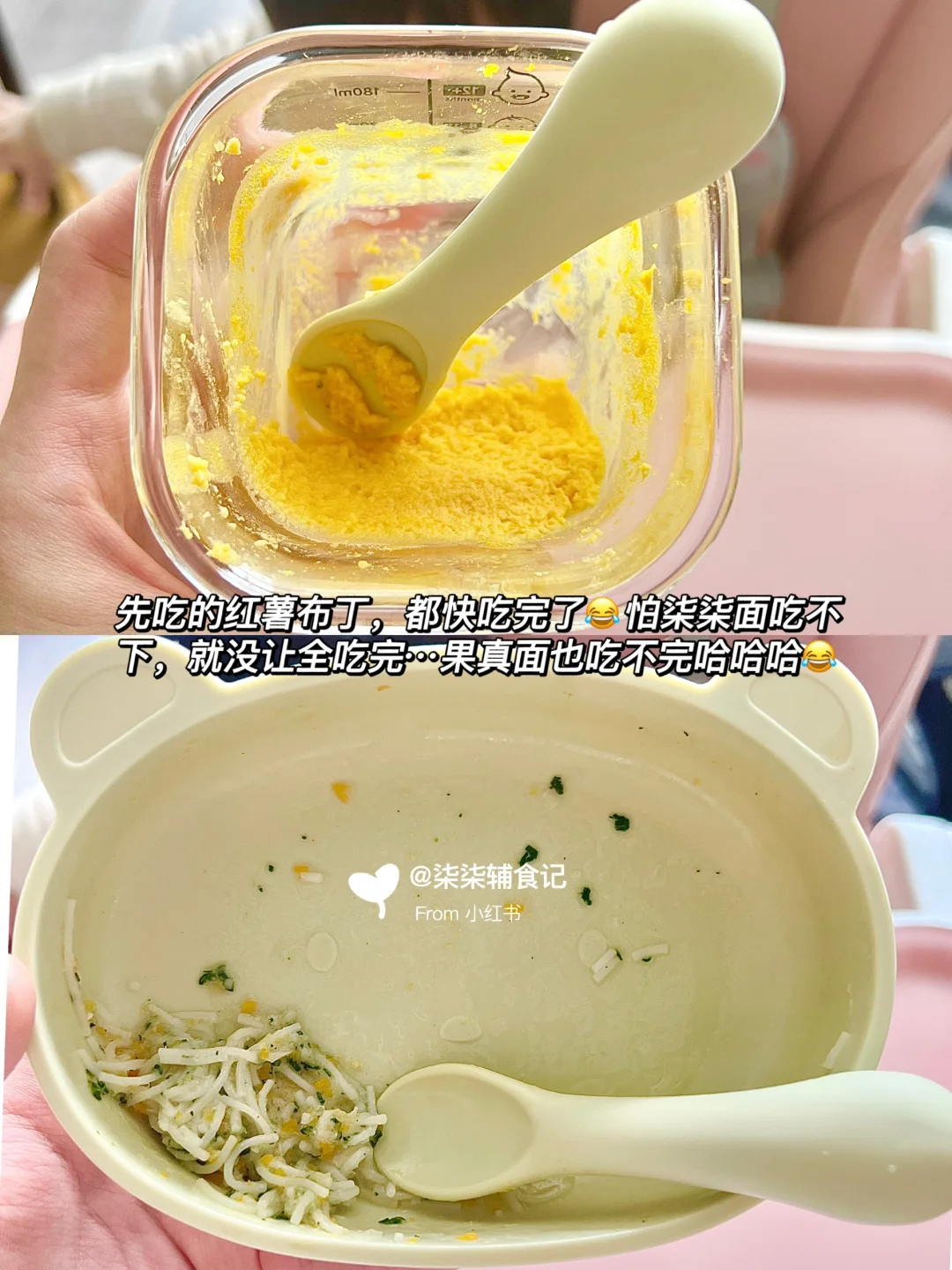 👧:7个月➕27天 🥣:碎碎面➕胡萝卜➕鳕鱼➕青菜 ⏰:午餐11:30 📝:碎碎面10g➕胡萝卜碎➕鳕鱼泥➕青菜碎 🍽️:下午水果:香蕉牛油果泥🍌🥑 今天解锁鳕鱼泥啦,打成泥后加进碎碎面一起煮,营养满满~ 💡宝宝吃鳕鱼有什么好处: ▫️鳕鱼富含多种营养物质,可以为宝宝补充营养,促进生长发育。 ▫️鳕鱼里含有DHA,有助于宝宝视网膜和大脑发育。 ▫️鳕鱼中的不饱和脂肪酸和镁元素有助于促进宝宝的骨骼和肌肉发育。 ⚠️6个月以上的宝宝可以适当补充鳕鱼,但是也不要过多,避免造成消化功能紊乱,消化不良、腹泻腹痛等。 🥣今天多做了一份红薯布丁吃,碎碎面就只吃10g,第一次做红薯布丁没想到还挺成功,香香嫩嫩,没牙的宝宝也可以吃,一开始先给柒柒吃的红薯布丁,味道太好啦,都停不下来,吃太多了哈哈导致后来鳕鱼面吃不完哈哈下次得先吃面再吃甜点了… 吃完喝了30ml水,午睡醒吃了香蕉牛油果泥,吃了大概50ml…小吃货哈哈,牛油果加了香蕉一起打泥,口感会多一点点甜味,更好入口~ ⚠️食材分量根据宝宝的食量添加。 ⚠️食材大小根据宝宝的咀嚼能力处理。