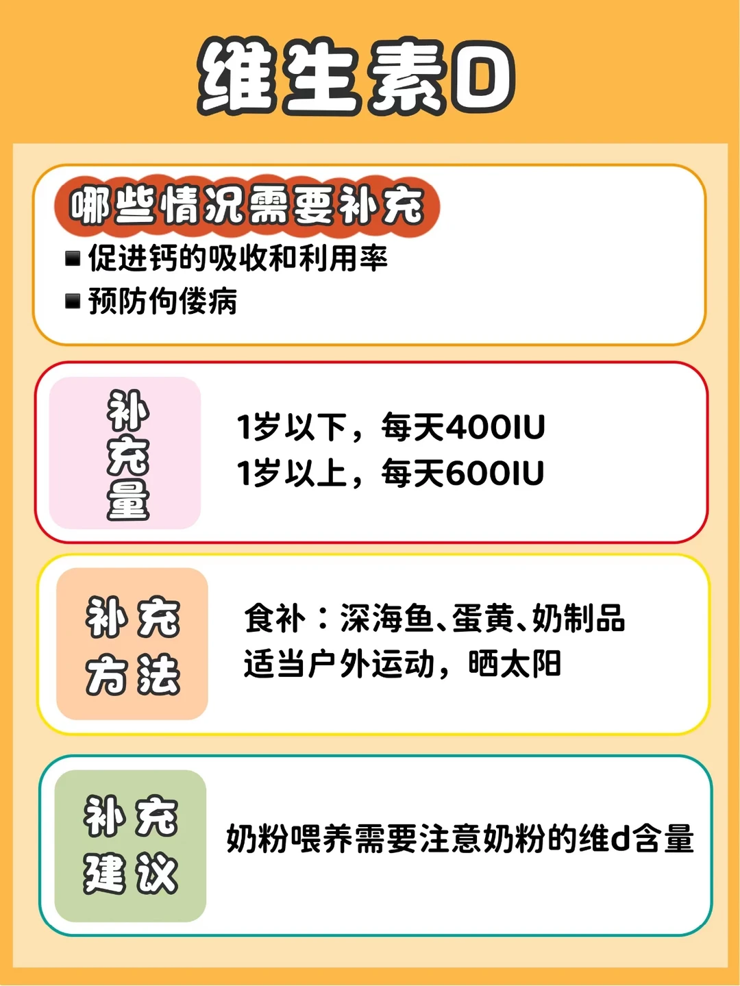 🔻奶粉喂养:计算奶粉中的维生素A含量,一般足够,只补维D即可