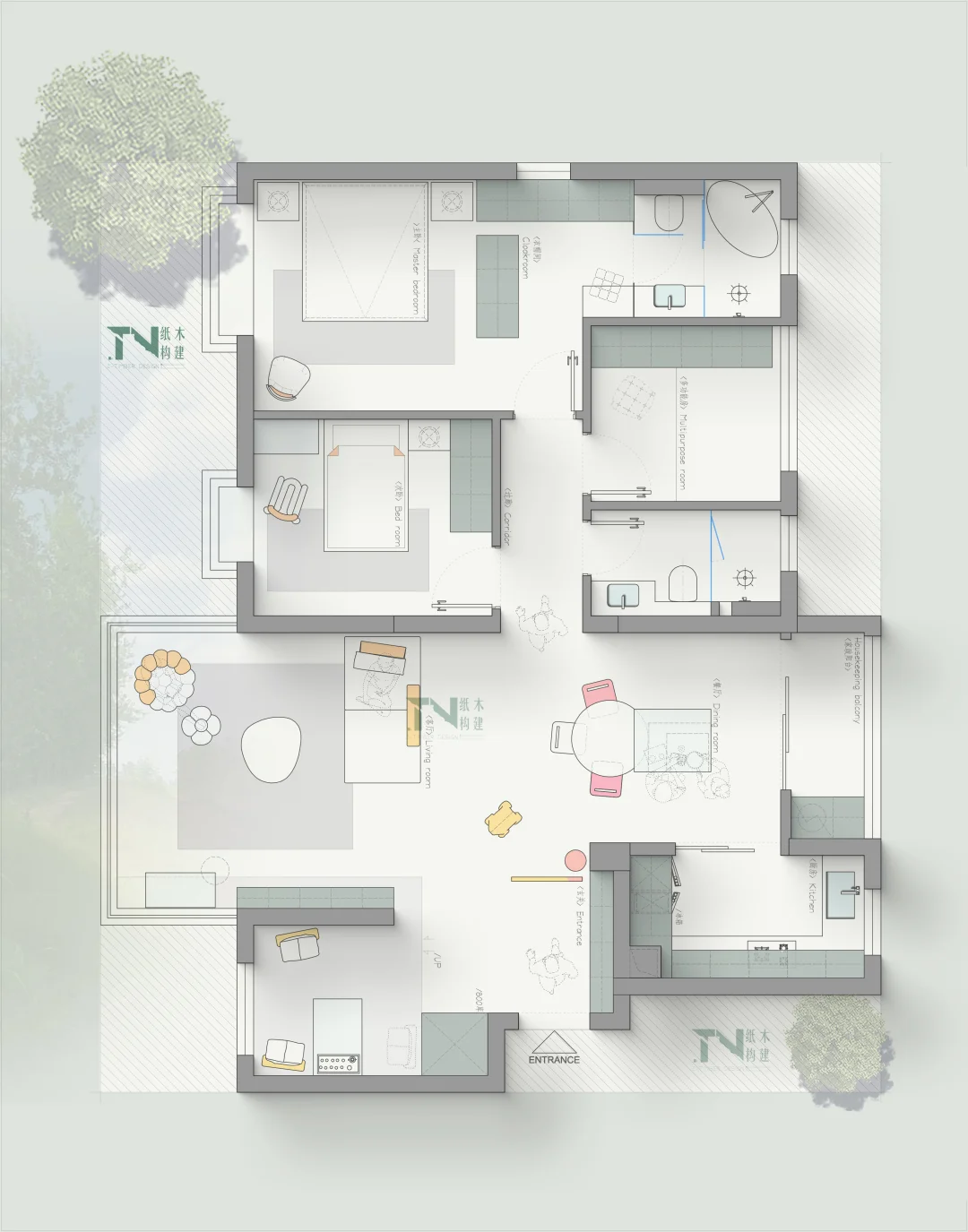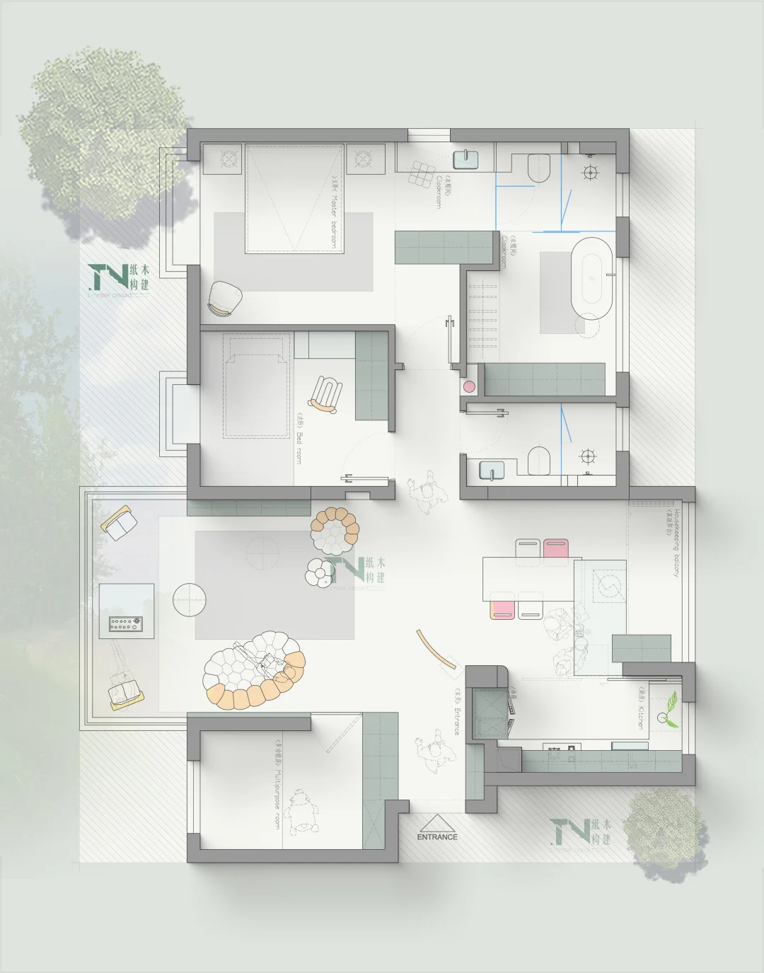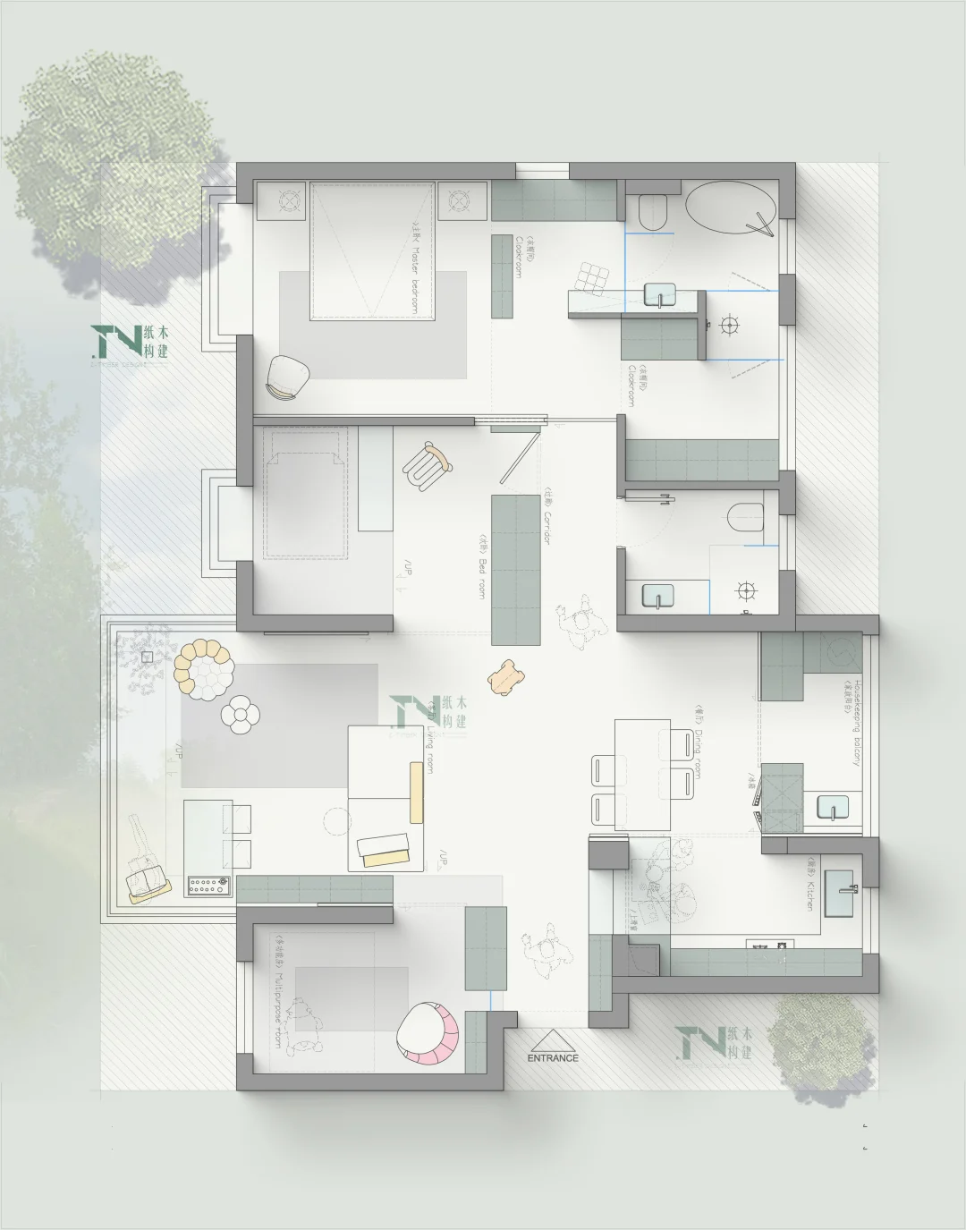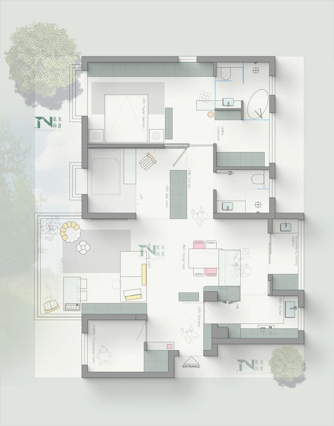 入口成形,不靠颜值靠动线出名,的眼红吧165㎡,其实19㎡门厅碰撞出,创新性火花