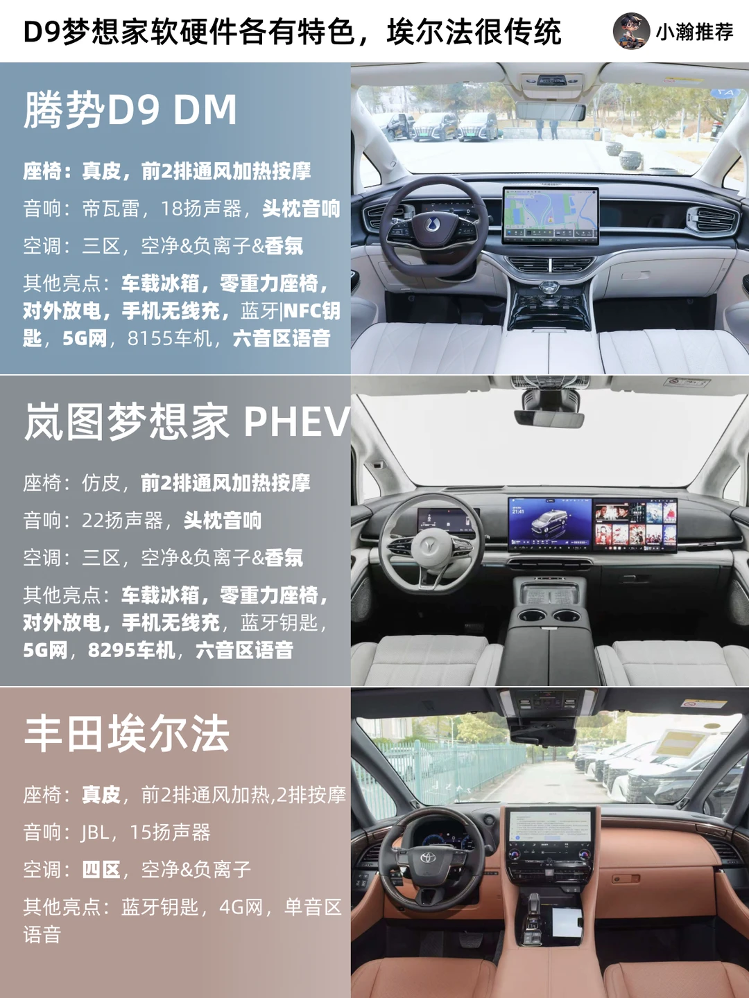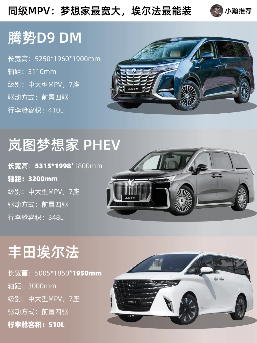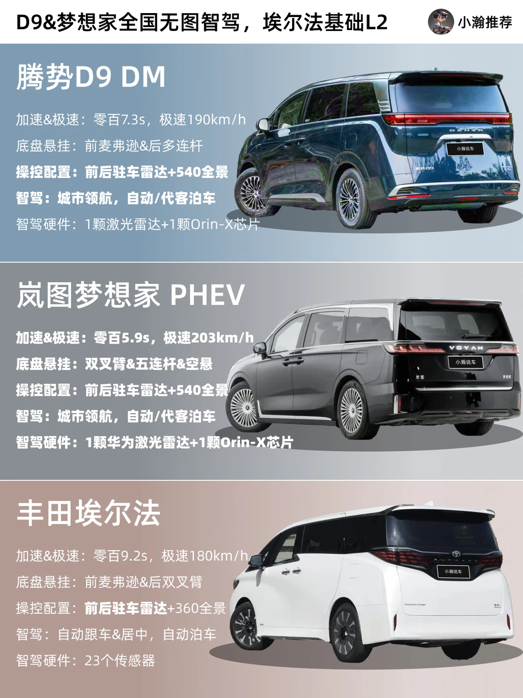 25款腾势D9正式上市了,8款车型,售价33.98-46.98!混动款除了升级了DM5.0外,还全系标配了云辇-C智能悬架和带激光雷达的天神之眼高阶智驾。这是要从搭上华为智驾的岚图梦想家手中把MPV销🏆抢回来呀! 只是有了这两款可油可电的豪华的国产MPV,各位老板们还考虑埃尔法吗?