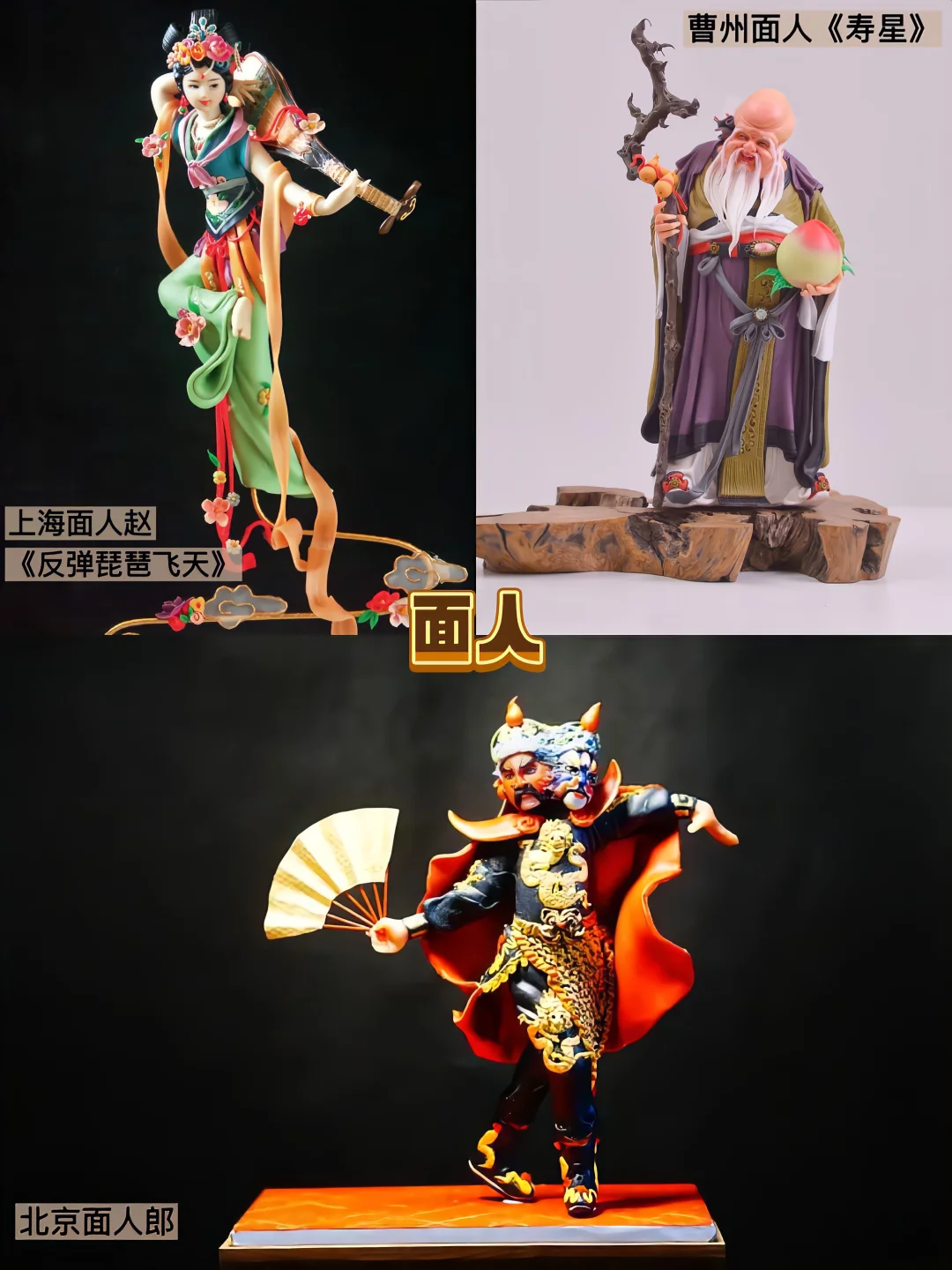 还有面人,像北京面人郎、上海面人赵、曹州面人等,都以精湛技术和鲜活创造闻名于世。