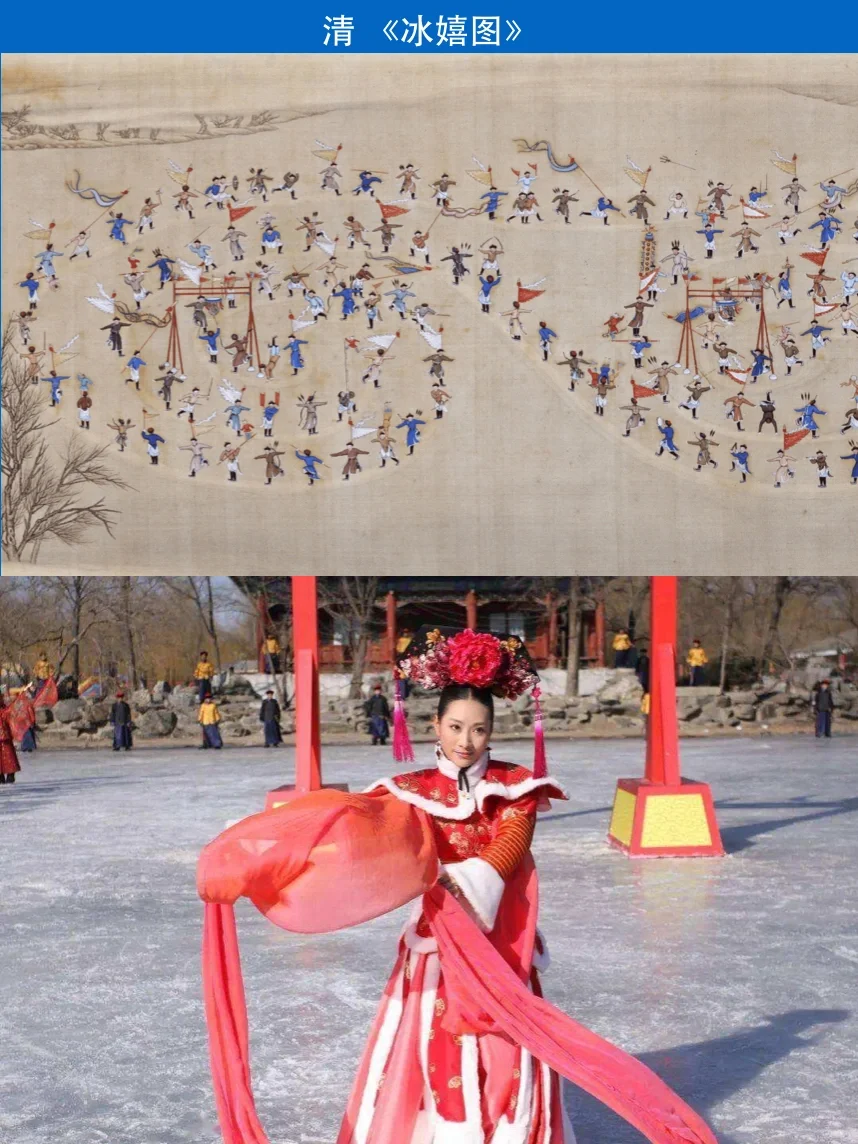 ⛸️而在《宋史》中出现的冰嬉,在明朝成为官方体育活动,在清朝被努尔哈赤发扬光大,走上国民度巅峰。