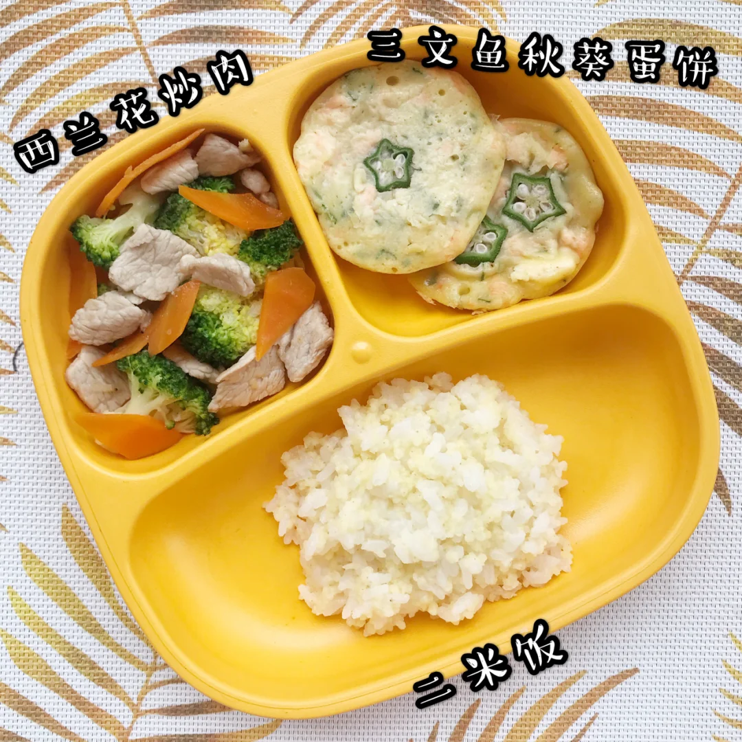三文鱼秋葵蛋饼,三文鱼秋葵切碎,加入鸡蛋面粉,平底锅刷油,倒入一勺面糊,上面放一颗秋葵装饰一下,两面煎熟即可。秋葵不但是为了装饰,赞赞确实很喜欢,每次吃都念叨着星星。