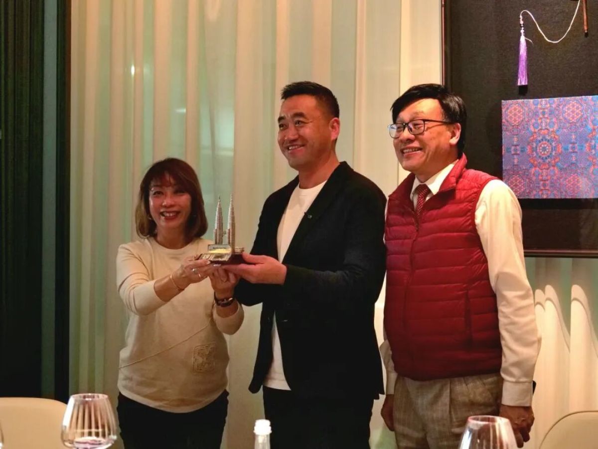 交流尾声,双方互赠文化信物,为此次活动留下珍贵纪念。周鹏邦代表马来西亚中国餐饮业协会,向阿庄新豫菜赠送象征马来西亚文化的吉隆坡双子塔摆件,期待未来能有更多中马餐饮交流合作机会;王铁庄则为代表团成员送上陈进长大师著作《一世厨缘》,希望通过书籍让国际餐饮人更深入了解中原饮食文化。