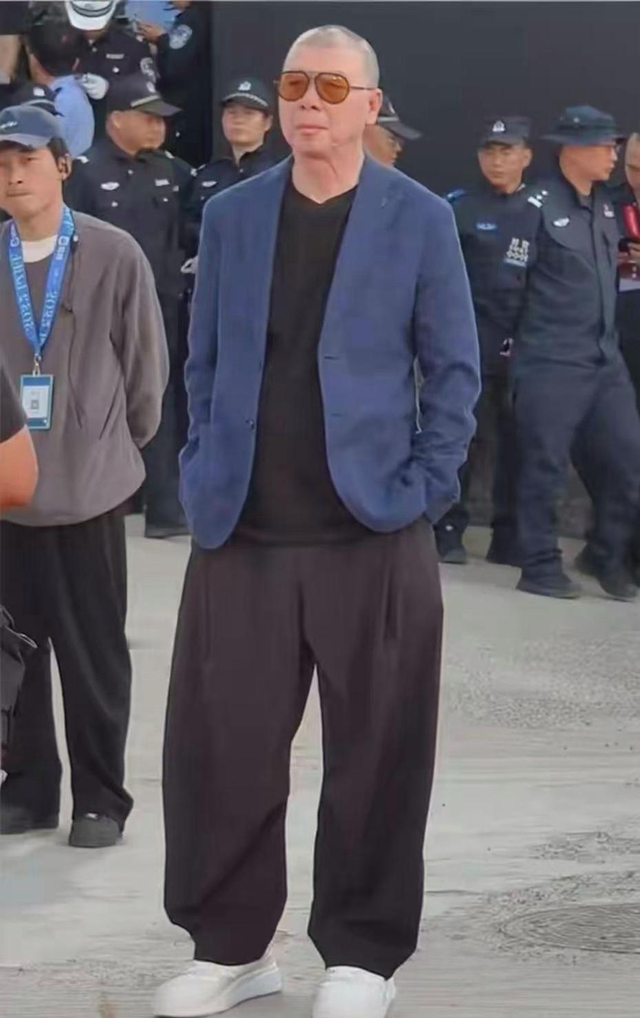太潮了,67岁冯小刚出席电影节,寸头,墨镜,大码休闲裤,好时尚