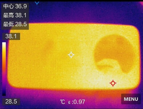散热方面,华为Mate80ProMax配备了雪绒毛细VC与双相变材料,配合金属机身提高了散热能力,热量不会只集中在某一处,而是快速传导到了整个机身。在30分钟的游戏的测试下,机身最高温度只有38.1摄氏度,表现优异。