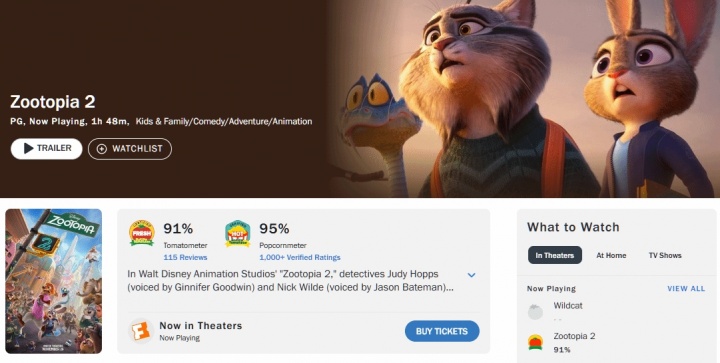 直播吧11月28日讯迪士尼出品人气动画电影《疯狂动物城2》已于11月26日正式上映,烂番茄新鲜度高达91%,爆米花指数(用户评分)更是来到了95%。