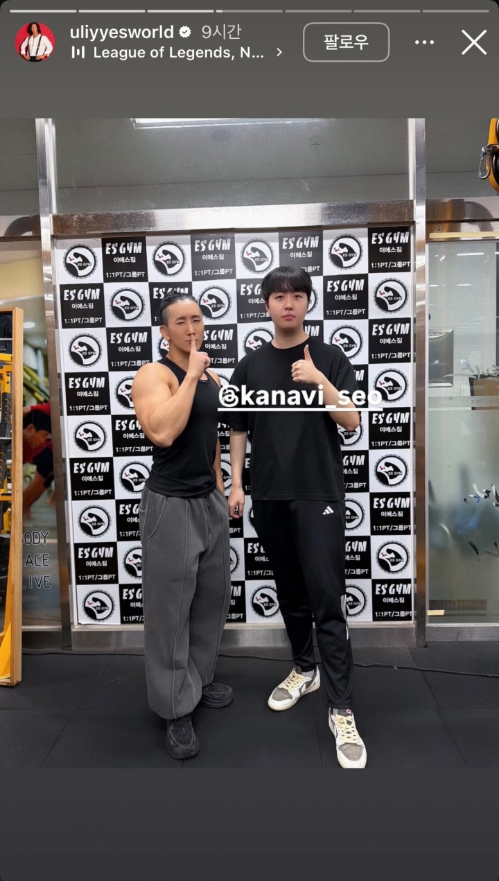 直播吧11月28日讯加盟HLE的打野选手Kanavi晒出自己在健身房与健身教练的合照曾为HLE俱乐部效力的多名选手都有健身的习惯(Zeka、Viper、Kingen等)。