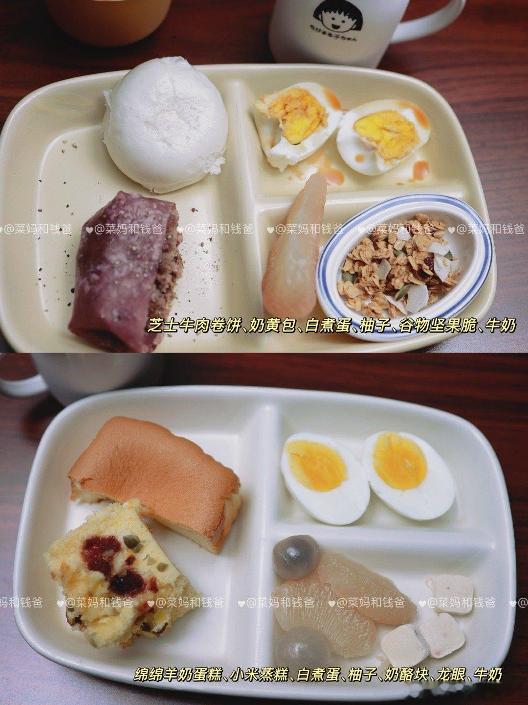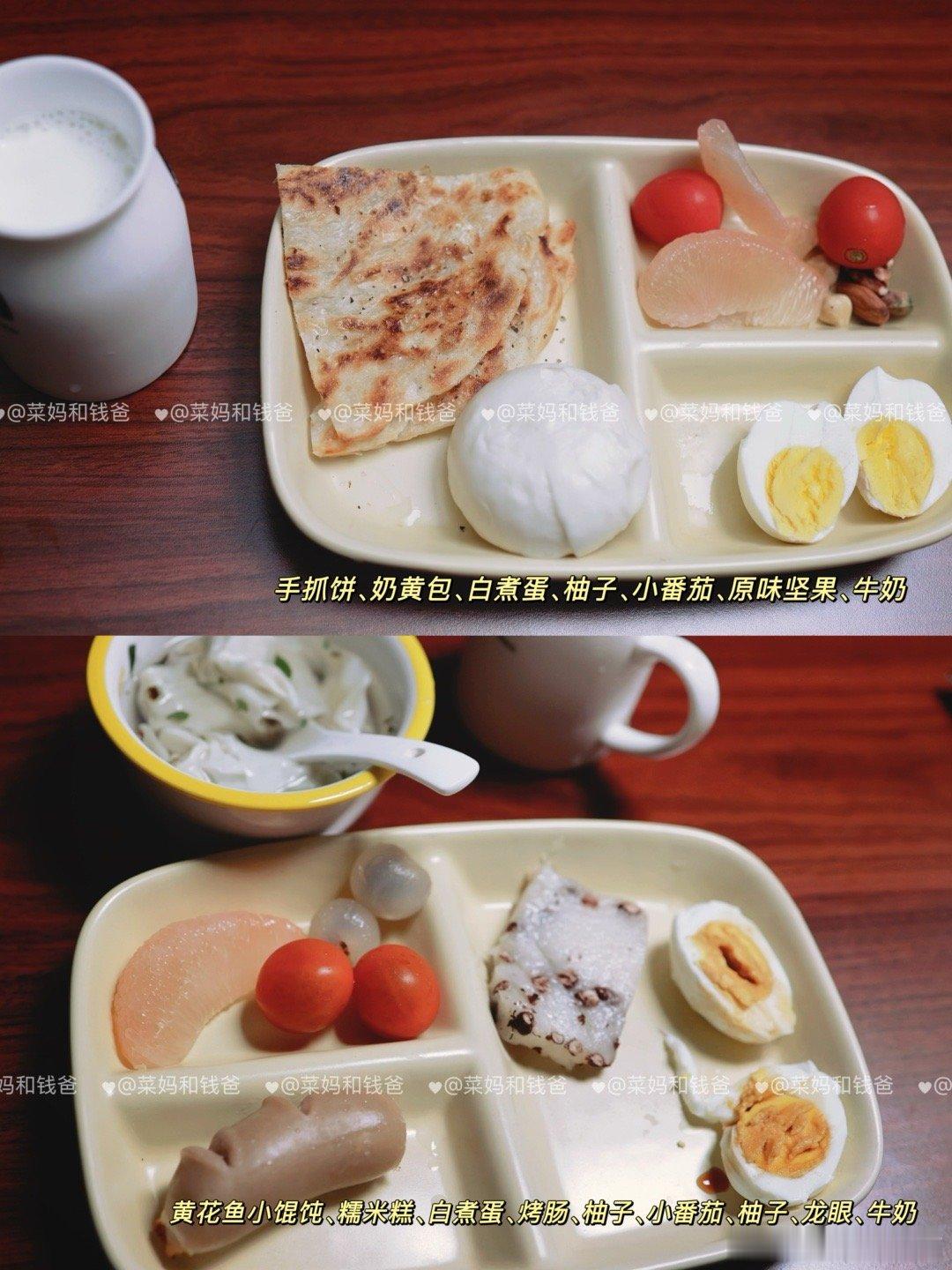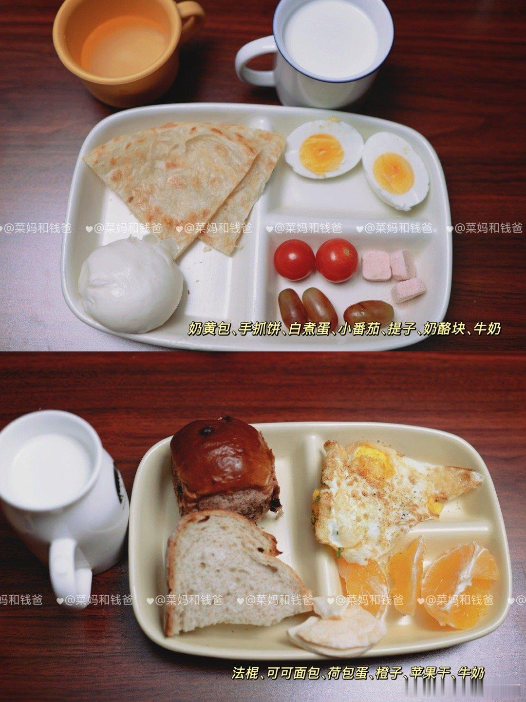 这3种早餐,别再吃了!❌牛奶+鸡蛋(蛋白+蛋白)错误原因:蛋白质双重叠加,热量虽足但缺碳水“燃料”,孩子上课上容易血糖不稳,注意力散。✅加一片全麦面包或一碗燕麦粥,来几颗坚果就好很多啦。❌果汁+面包圈(高碳低纤维)错误原因:糖分双剑合璧,精制碳水消化快,也容易很快就饿了。✅换成新鲜橙子切片+烤全面面包块+奶酪片+牛奶,满分早餐,轻松Get!❌白粥+大饼/油条(碳水+碳水)错误原因:双碳水轰炸,粥和大饼/油条都精制谷物,缺蛋白+蔬果缓冲,血糖快速升降如过山车,上午课上易犯困。✅加个鸡蛋,粥里来点芹菜末,搭配点肉松,配上一杯牛奶,孩子稳稳一上午!✨🥰【早餐公式】:主食+蛋白质(如鸡蛋)+奶豆类+蔬果🏵️均衡营养的早餐,应包括以下4类食物中的3类及以上:🥢谷薯类:如馒头、花卷、全麦面包、面条、米饭、米线、红薯、土豆。🥢动物性食物:鱼禽肉蛋等,如鸡蛋、鱼、虾、鸡肉、猪肉、牛肉。🥢蔬菜水果:如菠菜、西红柿、黄瓜等;桃、荔枝、梨、香蕉、车厘子等。🥢奶豆坚果:如牛奶、酸奶、奶酪;豆浆、豆腐脑、豆腐干等;坚果如核桃、榛子等。——————本月的早餐里,✨增加了一些汤汤水水热乎乎的早餐,如海鲜小馄饨、莜面鱼鱼;✨有一些比较有锅气的小时候的早餐,如葱油饼、手抓饼、披萨等;✨水果种类看起来很多,但每天的量其实并不多,增加了早餐的食材种类和兴趣。❇️🥰欢迎大家参考~健闻登顶计划全民营养提升计划 萌娃养成记带娃日常