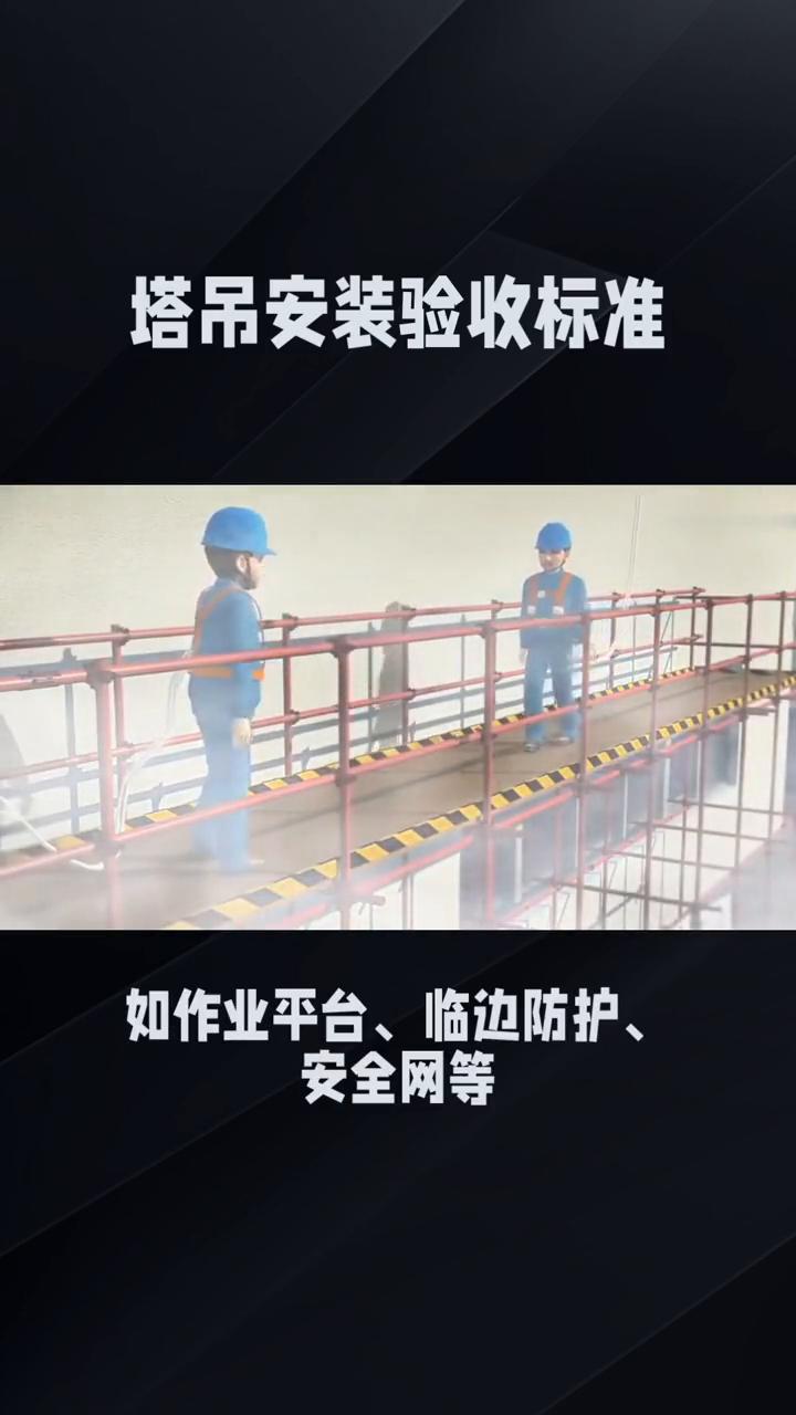 塔吊安装验收标准。 戈解说塔吊安装需要检查。 ·五、安全交底记录。审核安装单位对作业人员的安全技术交底记录,证明人员掌握操作要点与风险防控要求。 ·五、现场条件审核。 →安装场地。检查安装场地是否平整、坚实,有无障碍物,满足安装作业需求。 →起重设备。检查安装所需的起重设备性能是否良好,索具、吊具是否安全可靠。 →安全防护设施。确认安全防护设施是否搭设完毕,如作业平台、临边防护、安全网等。 ·基础验收。审核塔吊基础混凝土强度报告,确认强度达到设计值。检查基础尺寸偏差是否符合规范,检查地脚螺栓位置、露出长度是否符合设计要求,检查基础排水措施,防止积水浸泡基础。 ·六、安全防护措施审核。 →警戒区设置。监督施工单位设置安装作业警戒区,悬挂警示标志,严禁无关人员进入。 →个人防护用品。检查作业人员是否按规定佩戴和使用劳动防护用品,高空作业是否按规定系挂安全带。 →应急预案。审核施工单位编制的《塔吊事故应急预案》,明确坍塌、倾覆等事故的处置流程,包括应急救援小组职责、救援物资储备等。