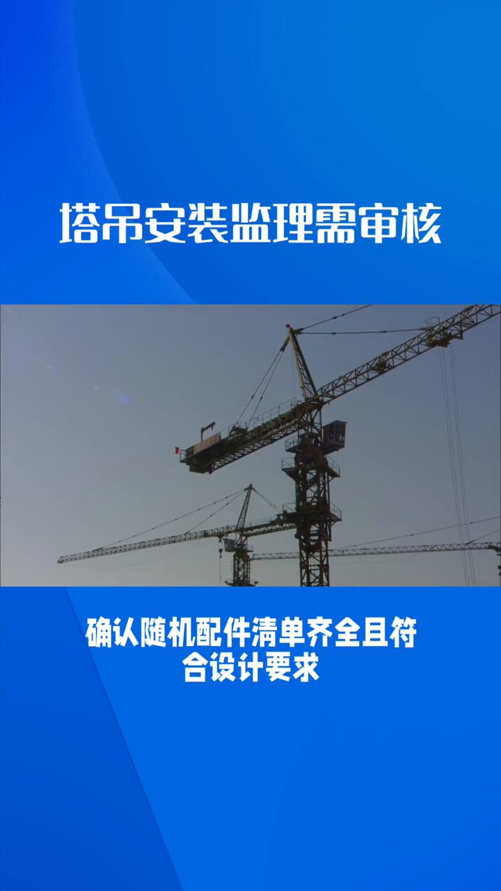 塔吊安装监理需审核。 在施工现场塔吊安装过程中监理需审核的内容: ·一、资质与文件审核。 →一、安装单位资质。审核安装单位的特种设备安装改造维修许可证,确认其资质范围涵盖安装塔吊的型号、吨位,且在有效期内同时核查其安全生产许可证,确保其具备安全生产条件。 →二、设备合法性文件。核查塔吊生产厂家的特种设备生产许可证、产品合格证及出厂检验报告,确认设备为合法生产。若为租赁设备还需核查产权备案证,确认设备产权清晰、无历史安全隐患。 →三、合同与协议。审核安装合同、安全生产管理协议,确保合同条款清晰、责任明确。 ·二、专项施工方案审核。 →一、方案编制依据。确认方案编制依据充分,符合现行国家及地方标准规范要求。 →二、安装/拆卸流程。审核安装、拆卸的程序和方法是否科学、合理、可行,是否针对工程特点和现场实际情况进行了细化。 →三、安全技术措施。检查安全技术措施是否全面、具体,具有针对性和可操作性,如高空作业防护、防倾覆、防碰撞、应急处置措施等。 →四、施工进度计划。确认施工进度计划合理,与土建工程进度协调。 →五、劳动力与物资准备。检查劳动力计划、机械设备及材料准备是否满足施工要求。 ·三、设备与构配件审核。 →一、部件完整性。检查塔吊部件是否齐全,有无变形、裂纹、锈蚀等缺陷。 →二、资料核对。核对塔吊《产品合格证》、《出厂检验报告》与设备铭牌信息是否一致。 →三、随机配件。确认随机配件清单齐全且符合设计要求。 ·四、人员资格审核。 →一、特种作业证书。核查塔吊安装拆卸工、信号司素工、起重司机的特种作业操作证,确认证书在有效期内且与拟操作塔吊的型号匹配。 →二、安全交底记录。