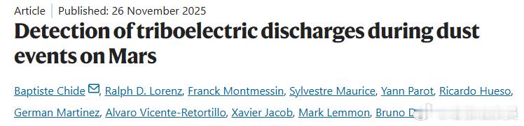 Nature刊文:“毅力号”首次捕捉到火星闪电信号!在太阳系中,地球、土星和木星都存在闪电和电活动。火星理论上存在电活性,但从未得到直接证明。11月26日,发表在《自然》(Nature)上的一篇论文,介绍了NASA毅力号火星车捕捉到的声音和电信号,是火星闪电的证据。这些观察表明火星大气具有电活性,有助于我们理解这颗星球的大气化学,或有助于未来探索。 研究者分析了毅力号在两个火星年内采集的28小时的麦克风记录。通过识别雷电特有的干扰和声学特征,他们分类了55个放电事件。他们发现,这些事件中有54个发生在研究期间前30%的强风事件中,表明风在火星电荷激发中起着重要作用。还有16个事件发生于火星车遭遇的仅有两次尘卷风期间,凸显出在麦克风录制范围之外可能存在更遥远或更低能量的放电现象。这些观测表明,火星大气具有电活性,特别是在局部扬尘而非全球性多尘季节里。研究者提出,此类活性可能增强了氧化环境,影响有机物保存和宜居性,也可能对设备和宇航员造成风险。他们呼吁开发专用仪器,改善大气模型,来量化火星电现象及其造成的化学影响。热门微博 科学新闻 天文航天 哈勃观察员