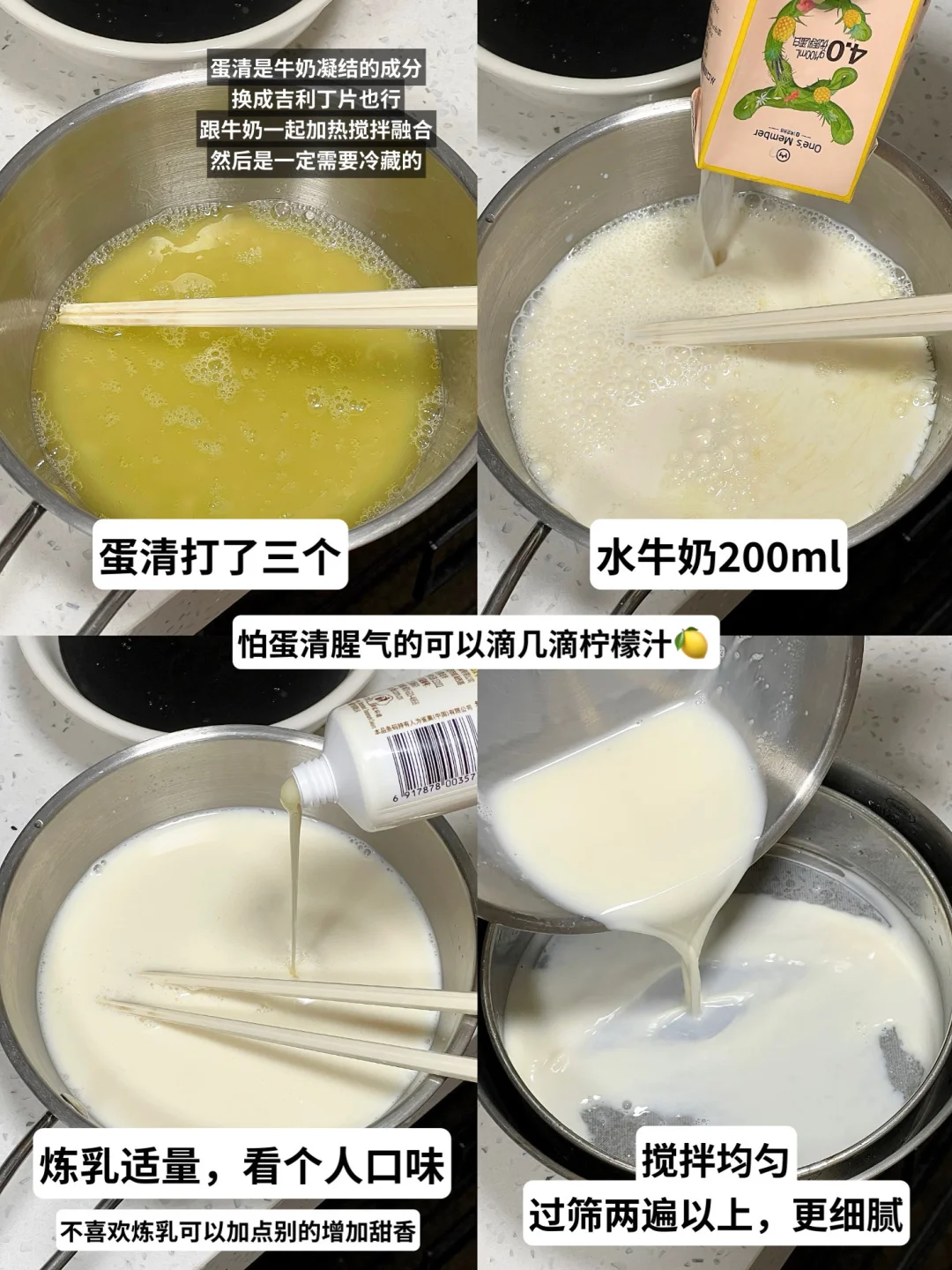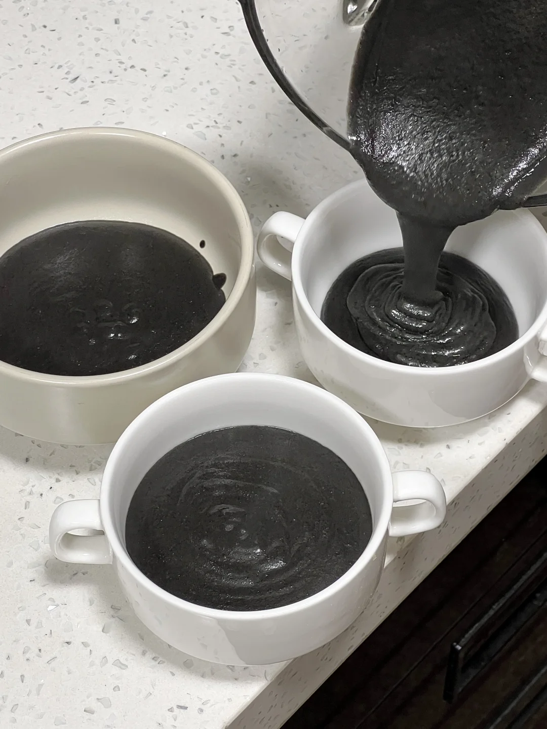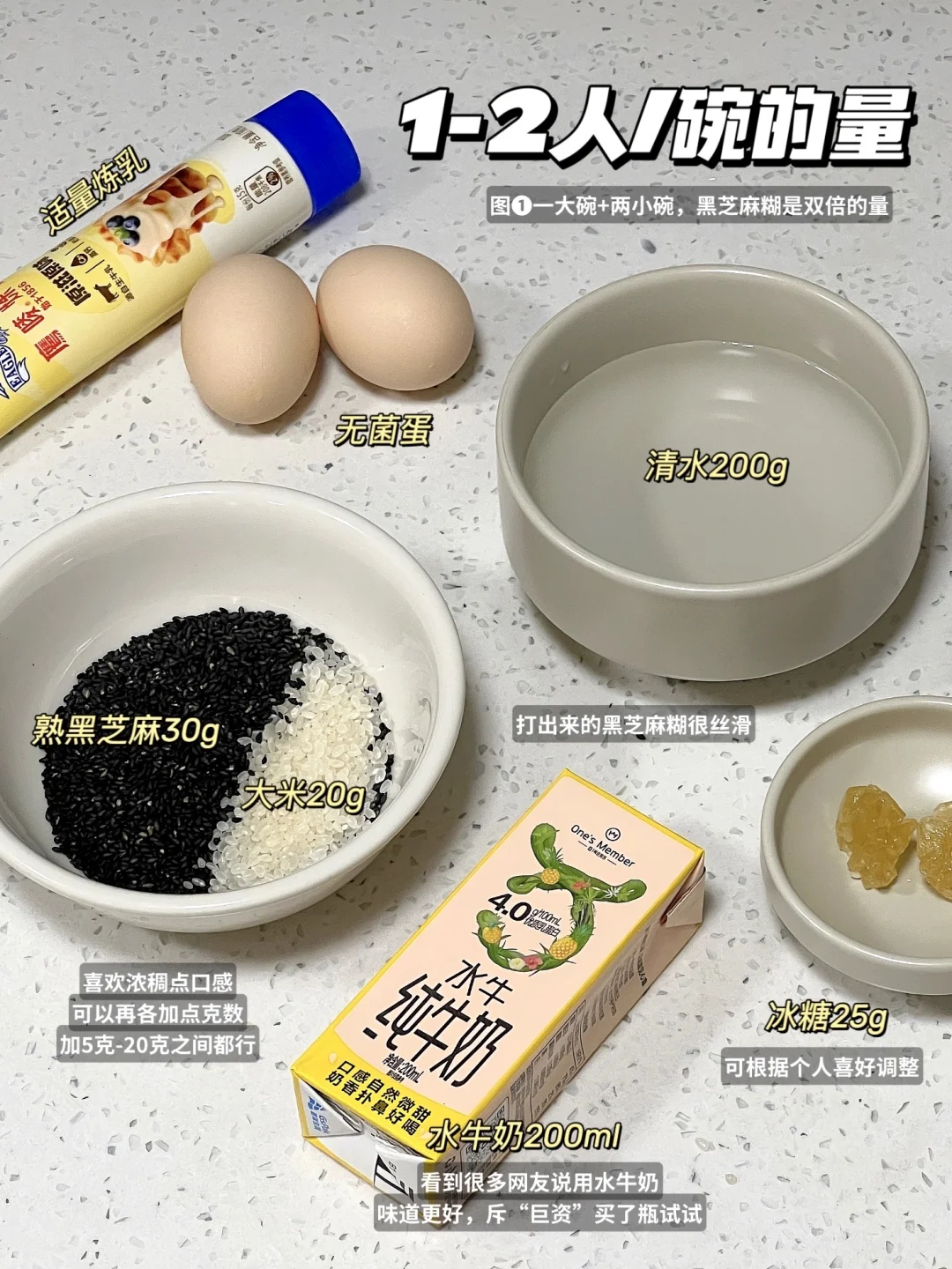 这几天我的小被铺天盖地的黑芝麻糊炖奶入侵了[呃R] 一向不怎么喜爱甜品的我,也忍不住喊男朋友做来试试。等蒸好后,迫不及待尝了一口,接着第二口第三口…吃的停不下来🤣 果然火起来不是没有道理的[暗中观察R] 上层嫩滑的炖奶,下层香醇的黑芝麻糊,一勺下去,不管在味道上还是口感上都很有层次感,很巧妙的搭配[赞R][赞R] 嫩滑与绵密在口中交融,没几分钟就空碗了,感觉吃完这碗自己要长头发了[doge] 📝食材准备 黑芝麻糊:熟黑芝麻|黄冰糖|大米或糯米 (再加点去核的红枣,或者红皮花生,也不错) 炖奶:炼乳|水牛奶|蛋清 🧑🏻‍🍳碎碎念 有些小技巧,需要注意的地方都放在图片里,就不重复说啦 做这道甜品,对我们来说最大问题就是蒸牛奶那步,一开始把握不好火候,第一碗是失败的[失望R] 后面再蒸了大碗,两小碗,有时不时翻开盖看看… 深秋三件套,已经尝试了黑芝麻糊炖奶 下次来试试哪个好呢[心心眼R]