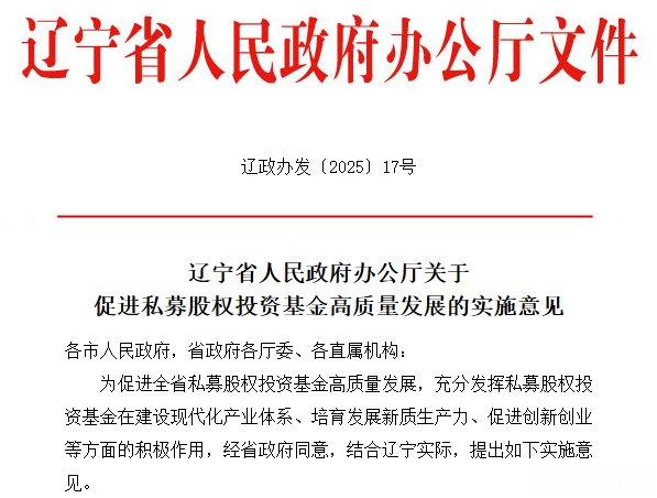 辽宁省政府近日发布《关于促进私募股权投资基金高质量发展的实施意见》,以22条精准举措为行业发展全面赋能,优化创新生态。《意见》明确提出,到2027年底,全省各类基金认缴规模力争突破1800亿元;到2030年底,力争突破2500亿元,为辽宁高质量发展构建坚实的资本支撑。