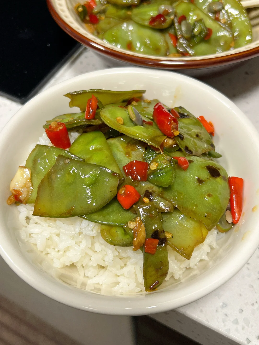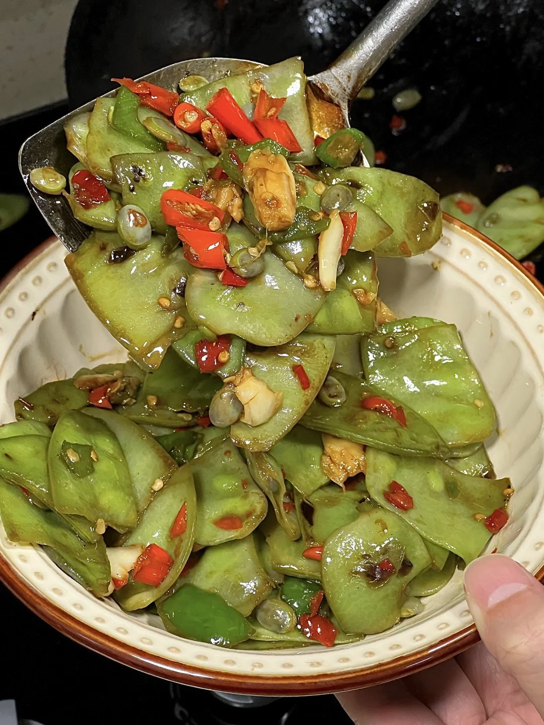 菜不在于多,下饭就行😋 今晚吃辣椒炒眉豆 这个在你们那叫什么?