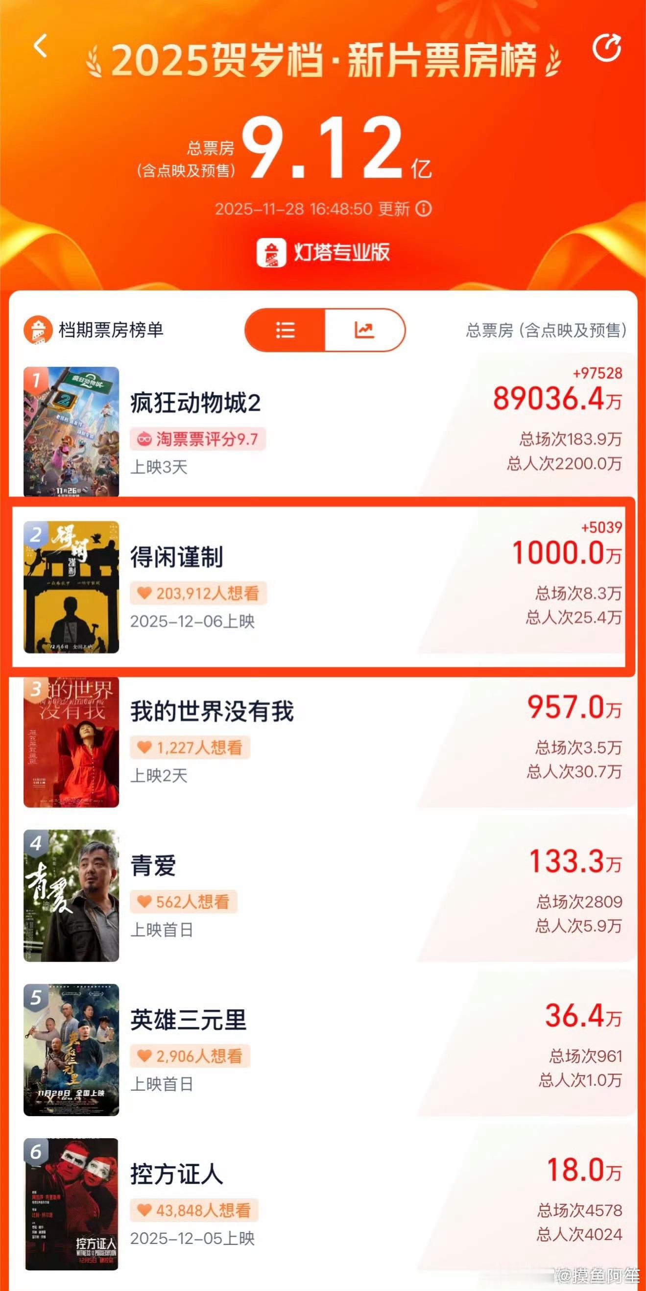 得闲谨制预售票房破1000万了,速度好快啊得闲谨制预售总票房突破1000万