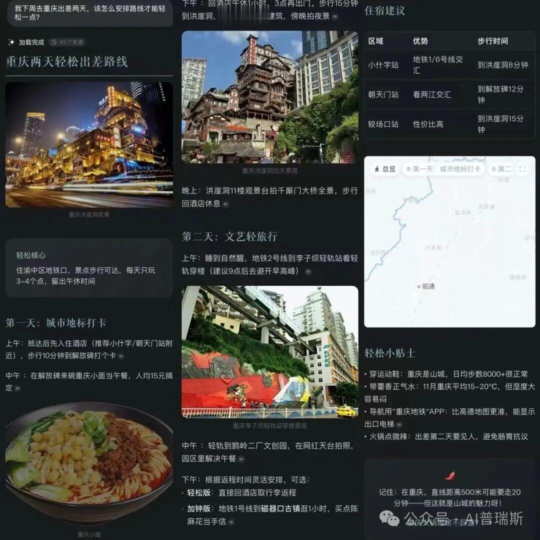 “我下周去重庆玩两天,该怎么安排路线才能轻松一点?”