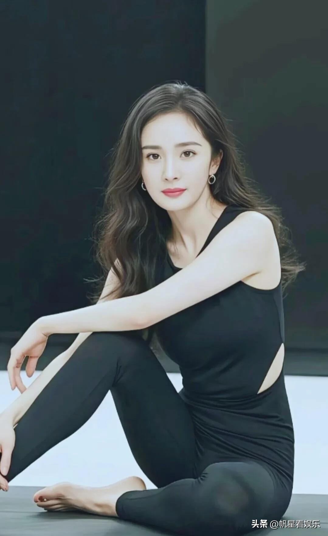 杨幂的这套瑜伽穿搭,以黑色为主色调,尽显简约与时尚。无袖上衣搭配紧身裤,勾勒出她