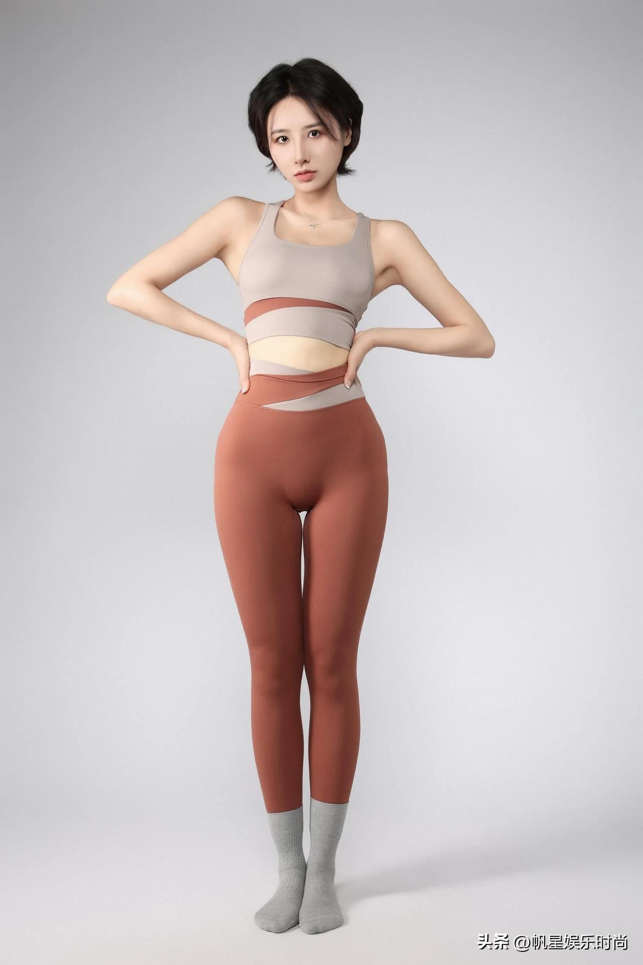这组瑜伽穿搭精妙地将舒适与时尚融为一体。背心运用浅棕与米灰拼色,露脐款式完美展露腰腹线条,于运动间尽显灵动之姿。高腰瑜伽裤以暖棕为主调,搭配同色系交错饰带,既贴合身形又富有设计感,巧妙修饰臀腿曲线。浅灰长袜为整体增添了一份休闲气息,整套搭配于简约之中营造出丰富层次。它让瑜伽时光既自在舒展,又能使人成为健身房里的视觉焦点,生动诠释了运动与美学的和谐共生,助力人们在每一次伸展、扭转时,都能以自信之态拥抱活力。