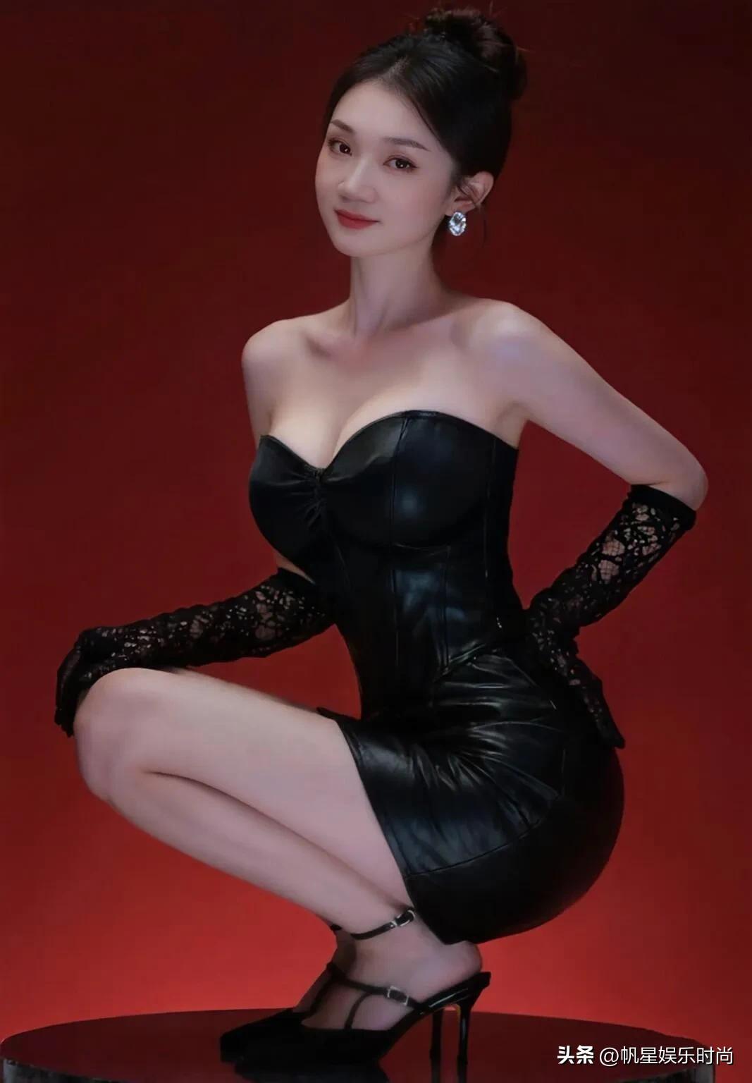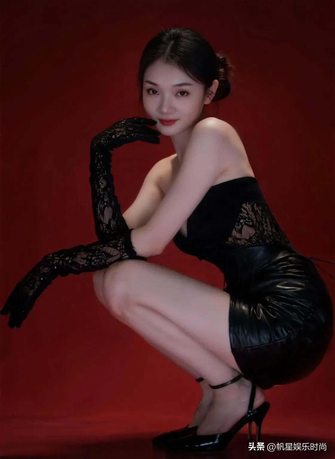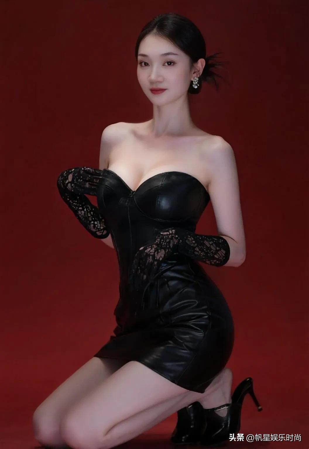 这件黑色抹胸短裙,流畅地勾勒出身形,简约设计之下,蕴藏着极致的性感张力。蕾丝长手套宛如精致面纱,增添了几分朦胧魅惑。脚蹬黑色尖头细跟鞋,踝间细带轻轻缠绕,每一处细节都在诠释着优雅与妩媚的和谐共生。以红调背景为衬托,这身造型在热烈氛围中更显冷艳高级,将女性的柔美与力量感交织成独特的风格符号,于光影之间定格成时尚的艺术剪影。
