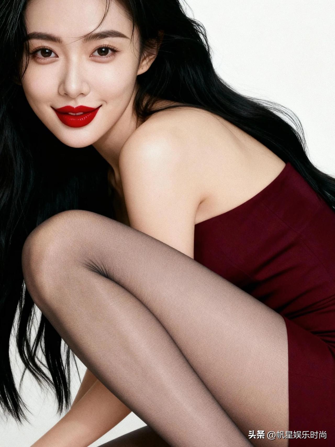 这身酒红色抹胸连体衣,完美融合了性感与优雅,其抹胸设计巧妙凸显出迷人的肩颈线条。搭配上黑色丝袜,更添一份朦胧的魅惑之感。脚下的黑色尖头高跟鞋,有效拉长了腿部线条。 整体造型简约却不失时尚张力,在浅灰背景的映衬下,将成熟妩媚的风格展现得酣畅淋漓。每一处搭配都精准把握了精致感与氛围感,打造出极具视觉冲击力的时尚造型。