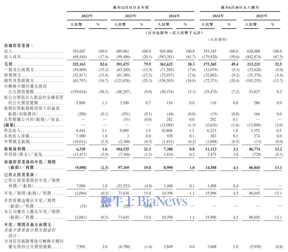 轻松健康集团2025年上半年营收为6.56亿元,较上年同期的3.55亿元增长84.8%;毛利为2.13亿元,上年同期的毛利为1.75亿元;毛利率为32.5%,上年同期的毛利率为49.4%。