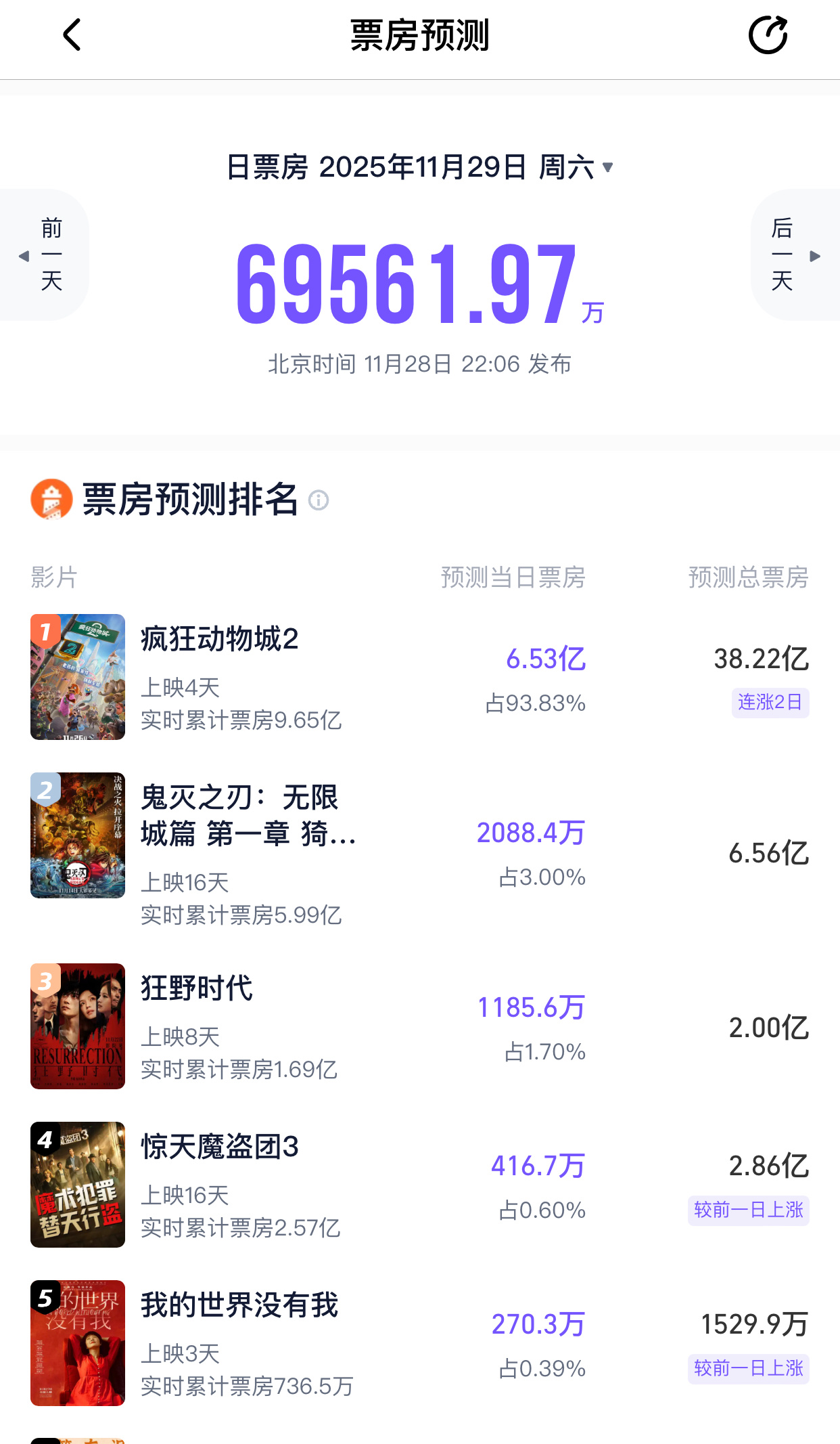 电影《疯狂动物城2》预测票房超38亿,明天周六预测超过6.5亿,这个IP是真的火