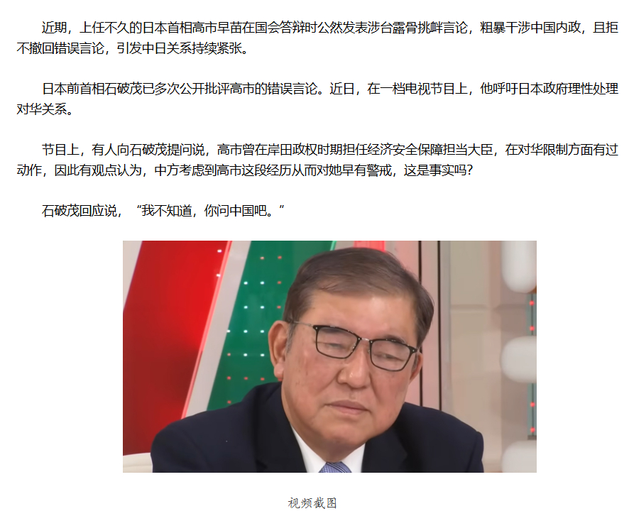 11月28日凌晨的最新情报,现在他来了第四条 ,石破茂等人批评高市早苗遭网暴:除