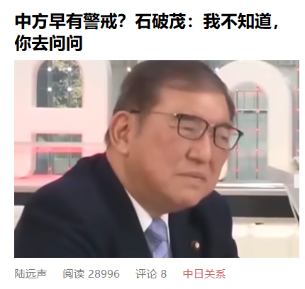 日媒近日向石破茂展示了中国媒体在社交平台上发表的题为《贸然玩火,小心自焚》的漫画