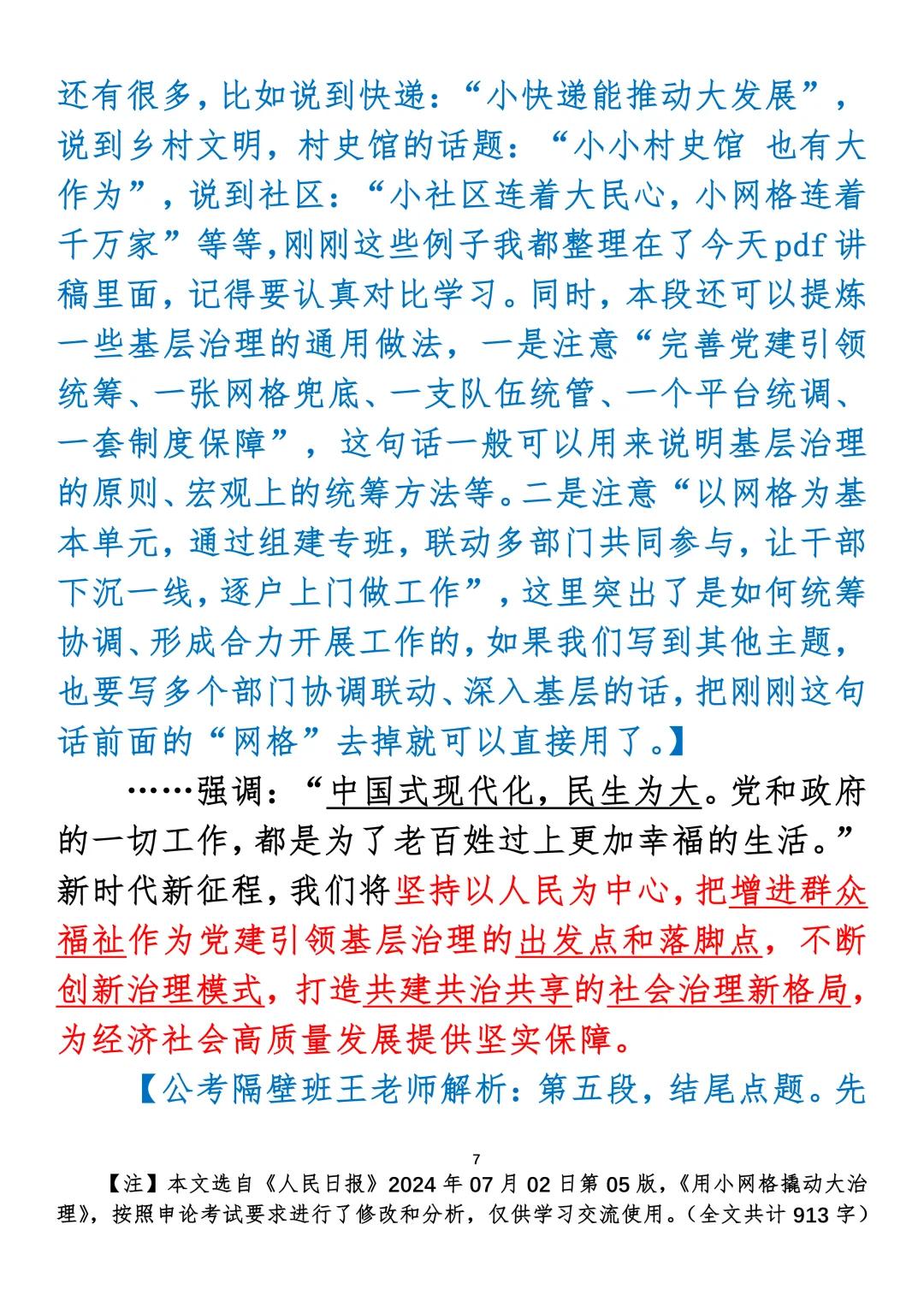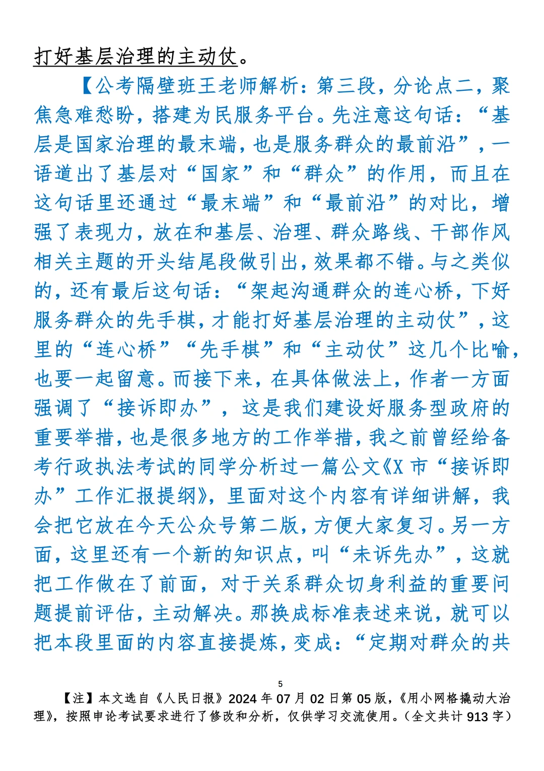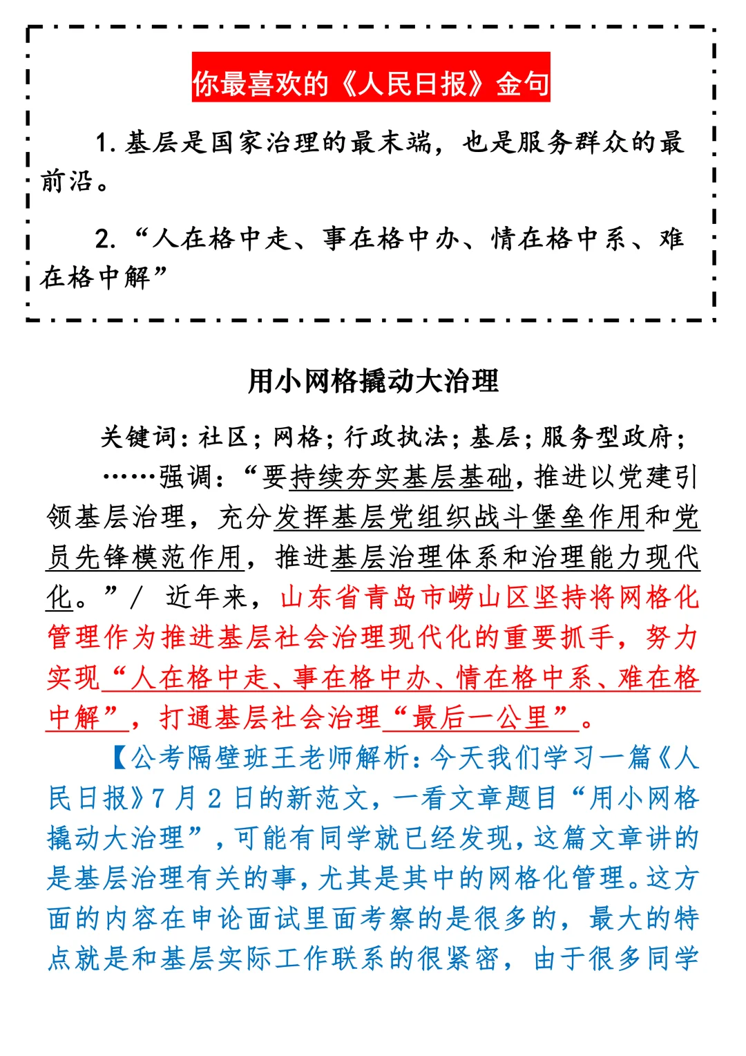 如何抄写:每日抄写文章发在“公考隔壁班王老师”账号,红色字是重点句和结构句,黑色字是正文,蓝色字是解析,大家抄写时不必抄蓝色字。建议先通读全文,做到心中有数再开始抄写,效果会更好。关于文章:抄写文章来源于人民日报,但每篇文章我都根据申论考试要求进行了修改:一是重写或修改开头、结尾;二是统一段首句句式结构;三是调整段落字数,使文章结构更均衡;四是简化复杂长难句,使之更具可模仿性。每篇文章无论修改多少,都是基于申论考试要求,毫无对人民日报文章品评之意。(此处致敬人民日报)