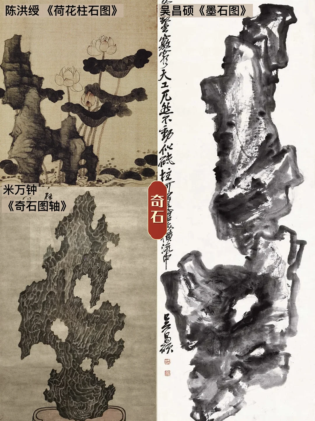 🪨自宋代起,山水画皴法多样,范宽雨点皴展现雄浑;郭熙卷云皴凸显蓬松;李唐斧劈皴概括量感;董源披麻皴再现江南,成为后世叠山的灵感来源。像明末清初的造园家张南垣,就曾模仿“荆关倪米”笔法筑山,他与诸多画家都画过的《墨石图》,可以说是最早的山石设计图了。