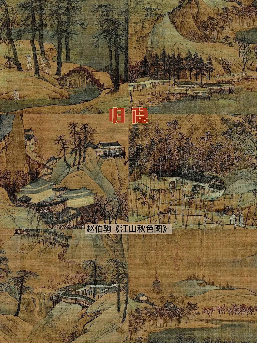 🎋“功成身退,栖居于野”的畅想在古画中流传,无论是董源《岸溪图》中的溪池涟漪、楼台水榭;还是赵伯驹《江山秋色图》中的山峦竹林、屋宇回廊,均为寄情自然,超脱出世的典范。