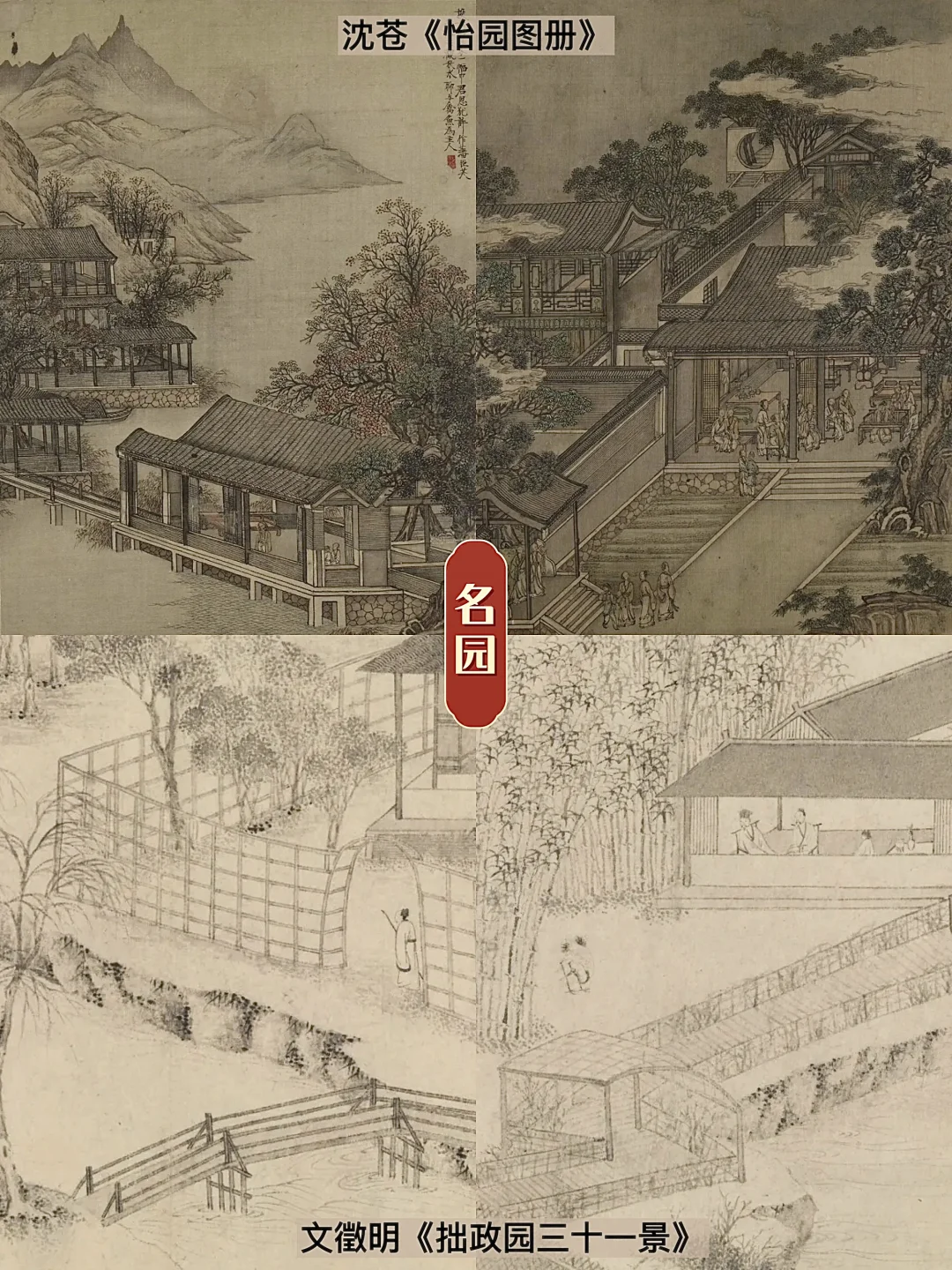 🎋到了清代,许多知名园林都被记录下来,比如虎丘、怡园、拙政园、狮子林等等,更有《江南园林胜景图册》描绘出瘦西湖42处景点,以供南北交流。