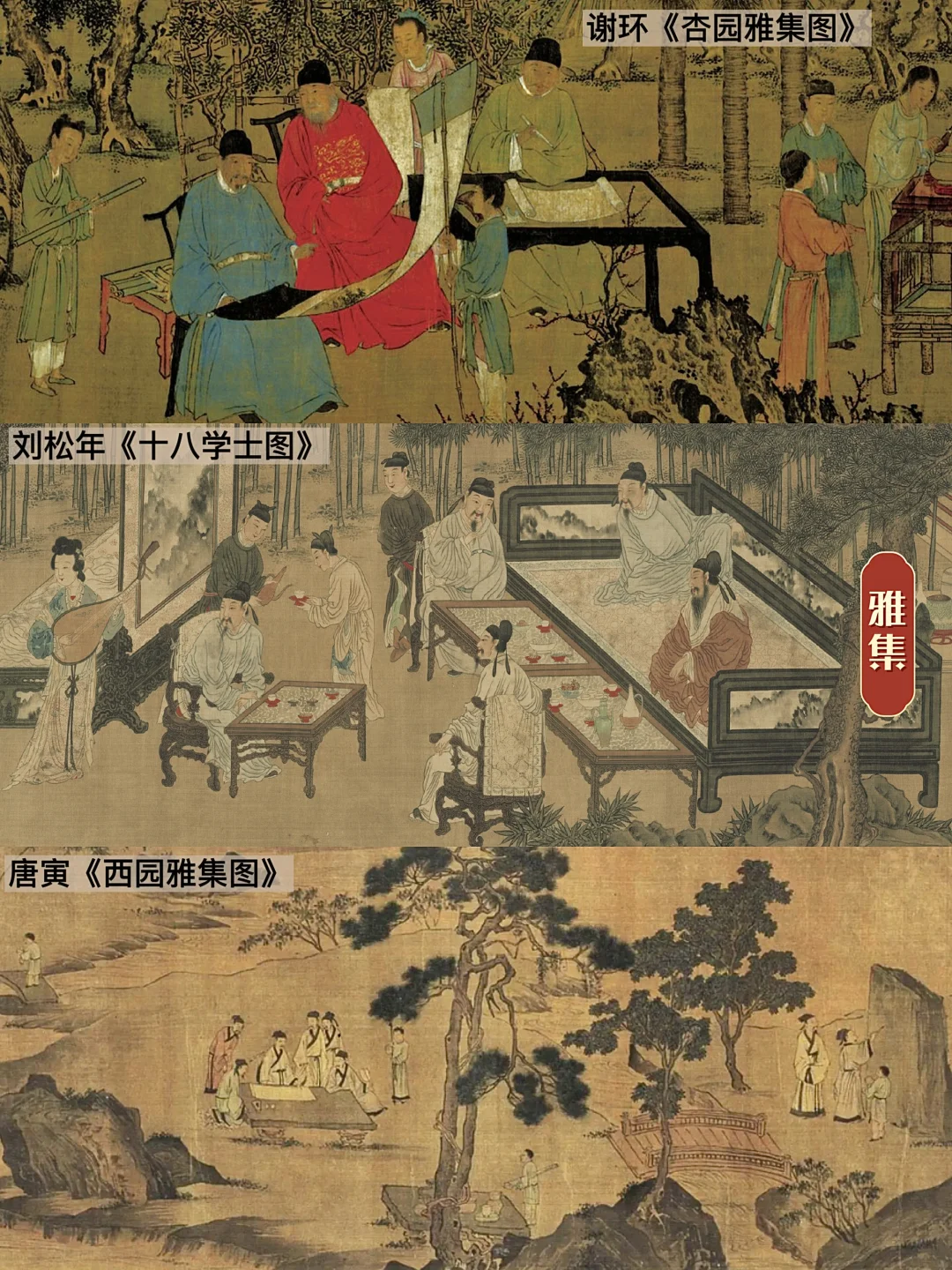 🍶文人雅士多爱聚于园林,《杏园雅集图》《十八学士图》《西园雅集图》都曾呈现出这样一幅画面:有人赋诗作画;有人扶琴唱和;有人打坐问禅;有人对弈博古,在茶酒宴会里,花草古石中,进行人与自然的灵魂对话。