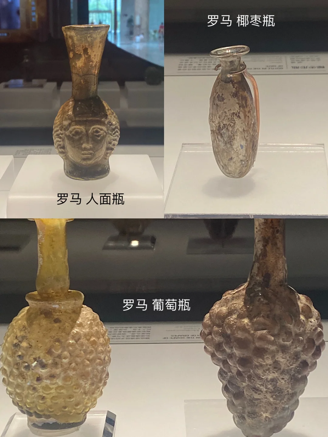 🍇🌴首先是外观,罗马人最爱的葡萄酒、最尊敬的椰枣树、最崇拜的神话人物都被塑造成了玻璃容器的形状。