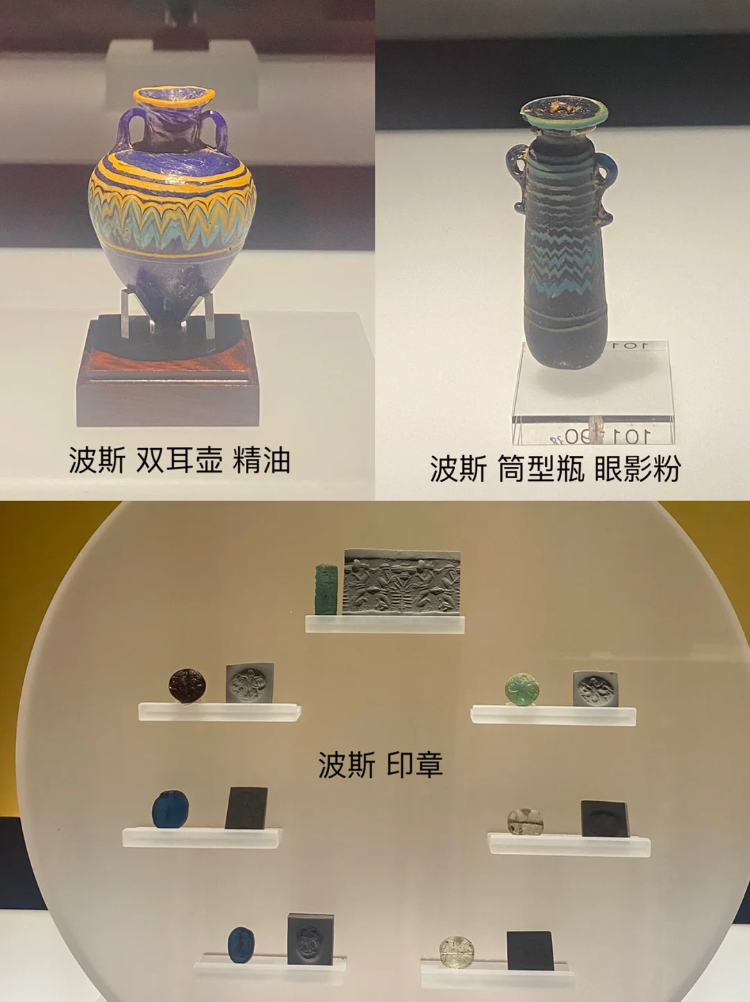 公元前6世纪,波斯帝国建立。公元前4世纪,地中海的希腊化时代来临。玻璃制造业两次达到巅峰。人们用它☀️来盛放精油、防紫外线和蚊虫叮咬的眼影粉