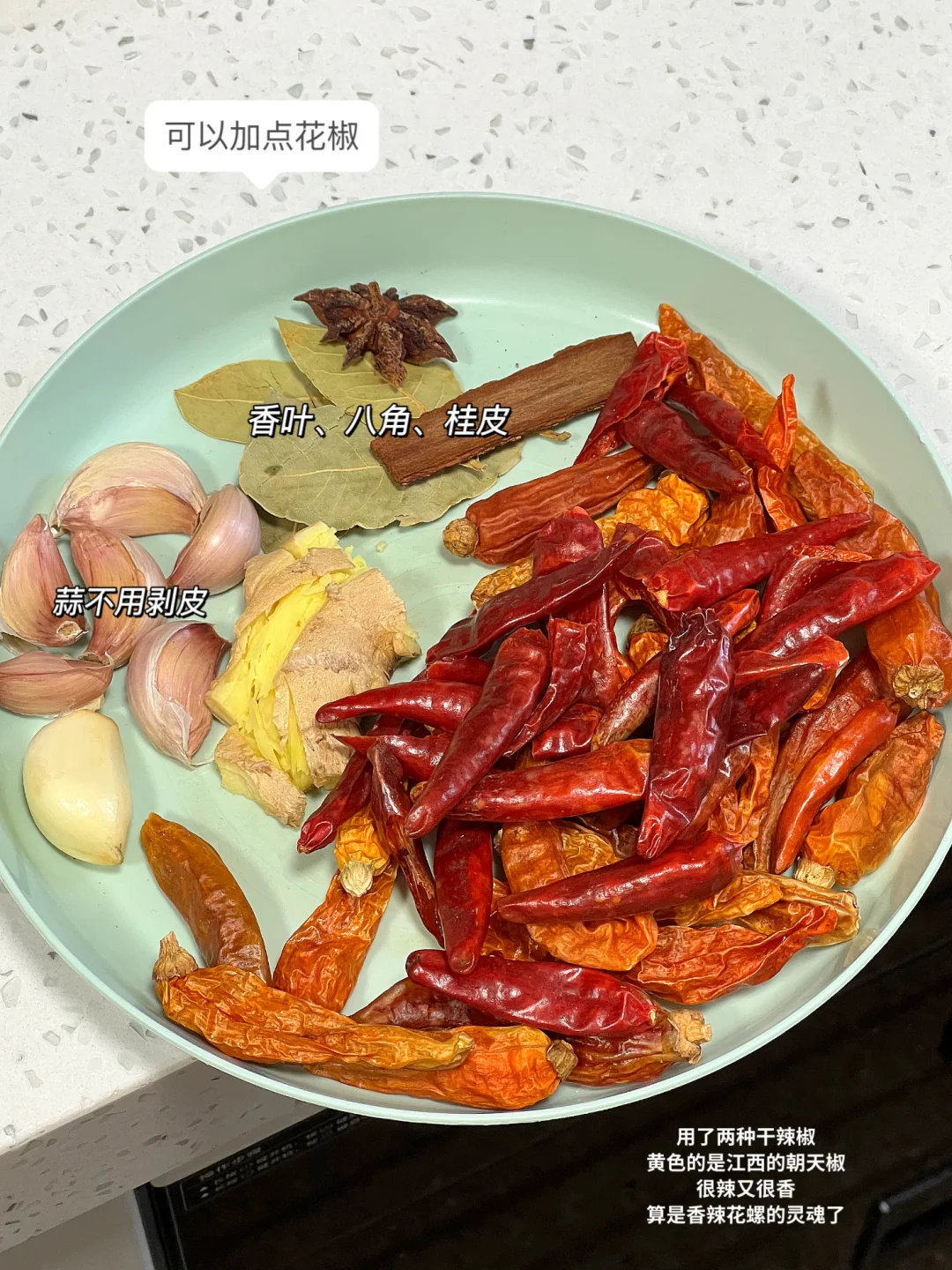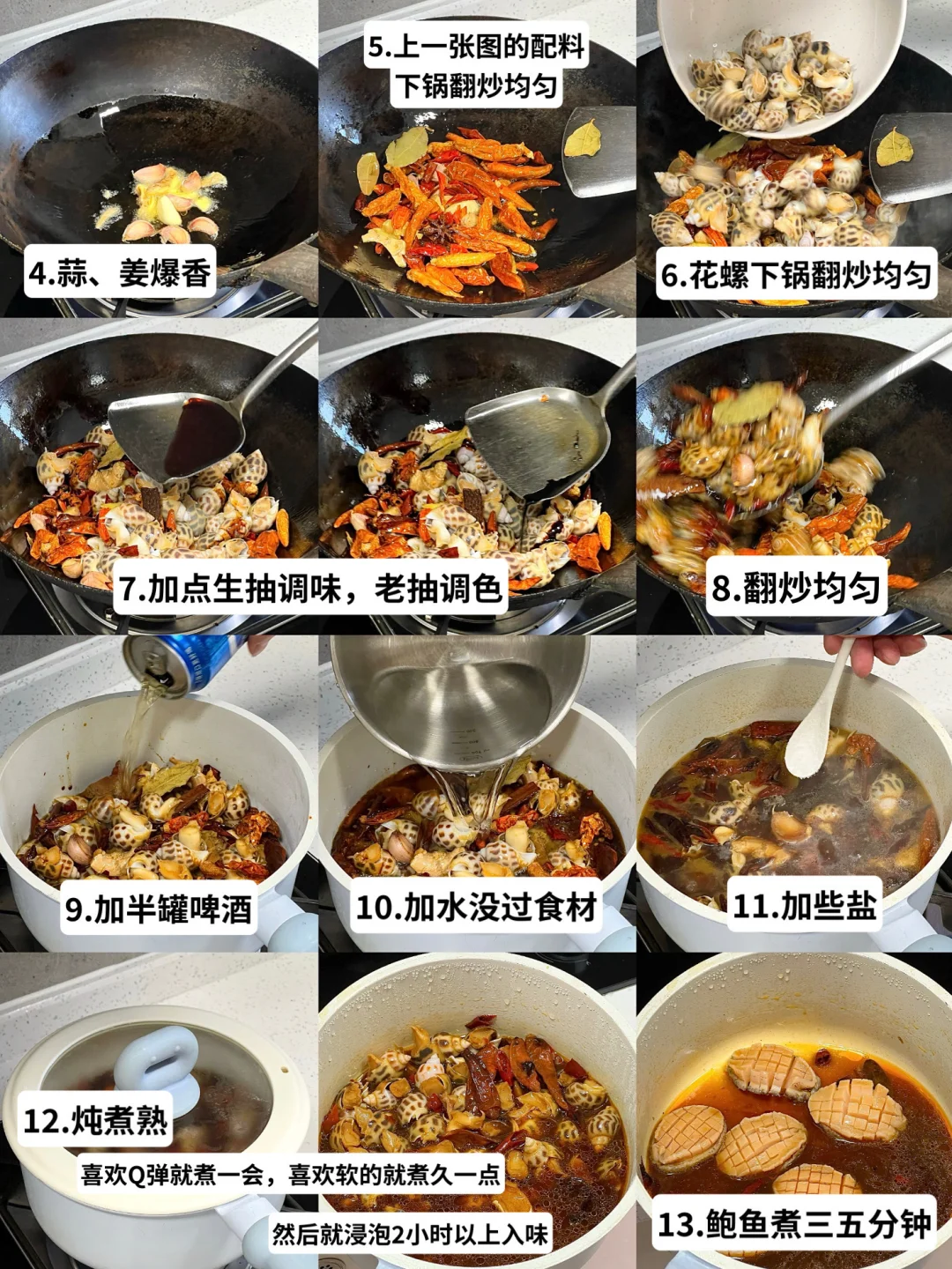 花螺|鲍鱼|干辣椒(灵魂注入,干辣椒的选择挺重要的)姜 蒜
