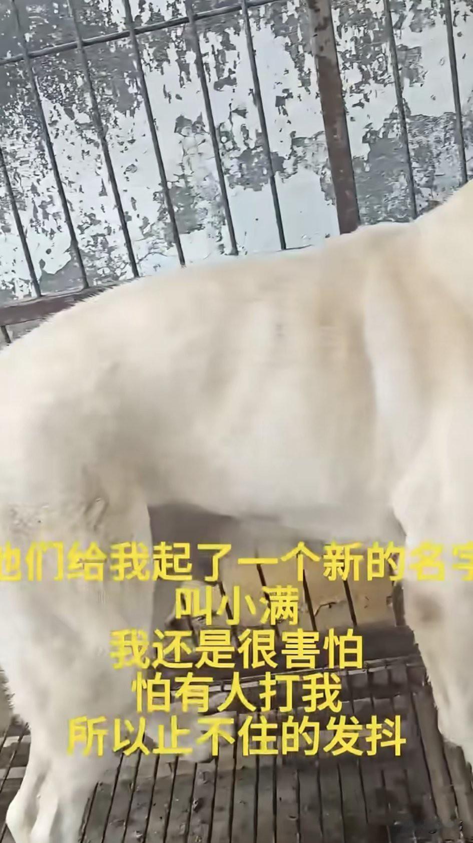 太可怜了!一只狗狗居然被主人送上了狗肉车,也就是在这里它遇到了好心的救援队,他们救出了可怜的它,还给它取了一个新的名字了小满。 在救援中心,狗狗依旧很害怕,怕有人打它,经常发抖,也不敢吃好心人递给它的食物,因为它之前被殴打,所以特别害怕。幸运的是救援中心的好心人从来不欺负狗狗,一直耐心的对待它们,小满这才慢慢开始不惧怕人类,慢慢融入狗群之中。相信在这里狗狗小满也会迎来新生。