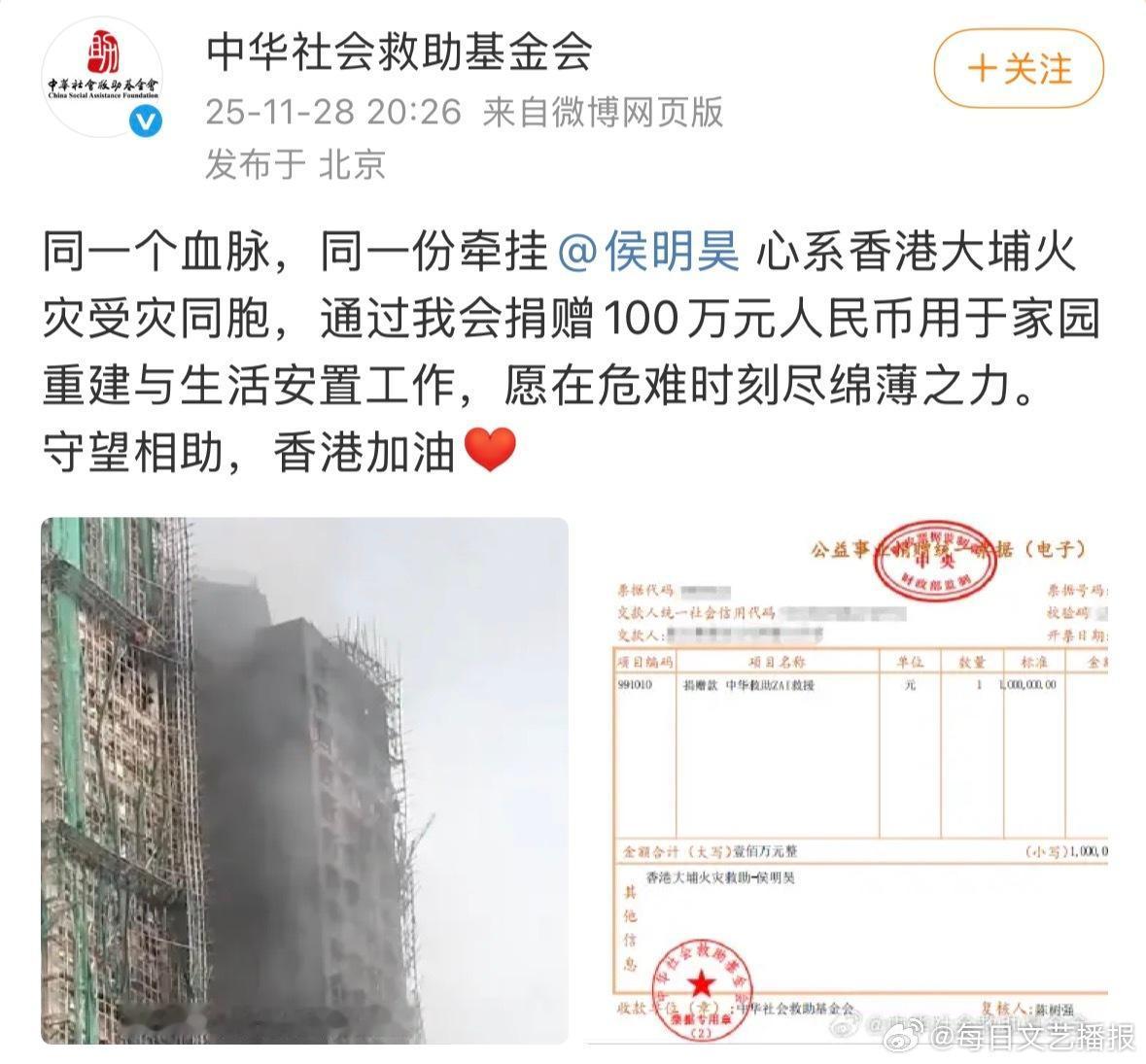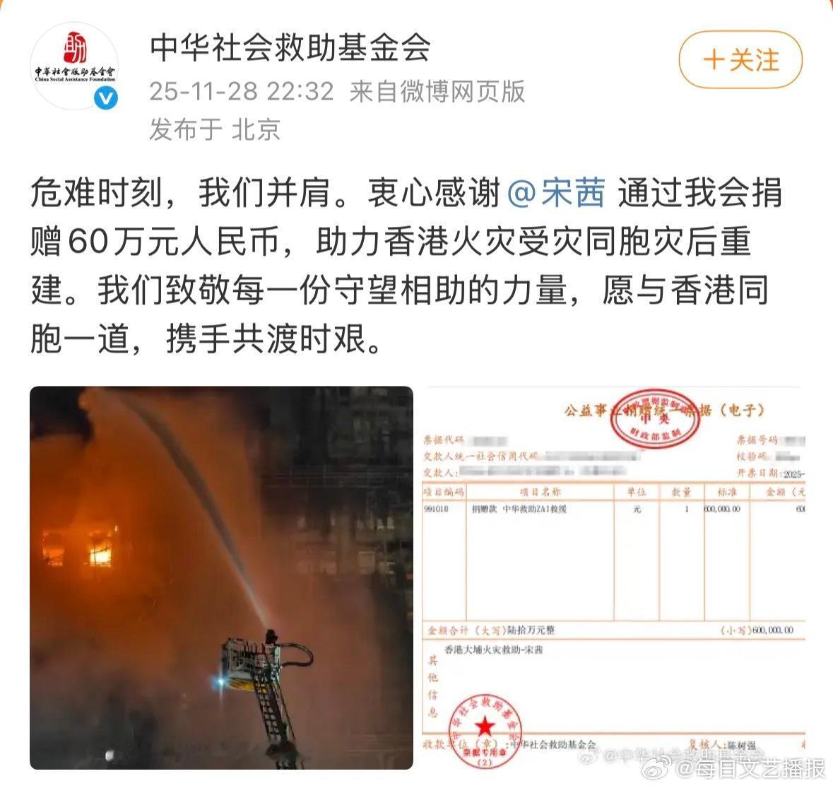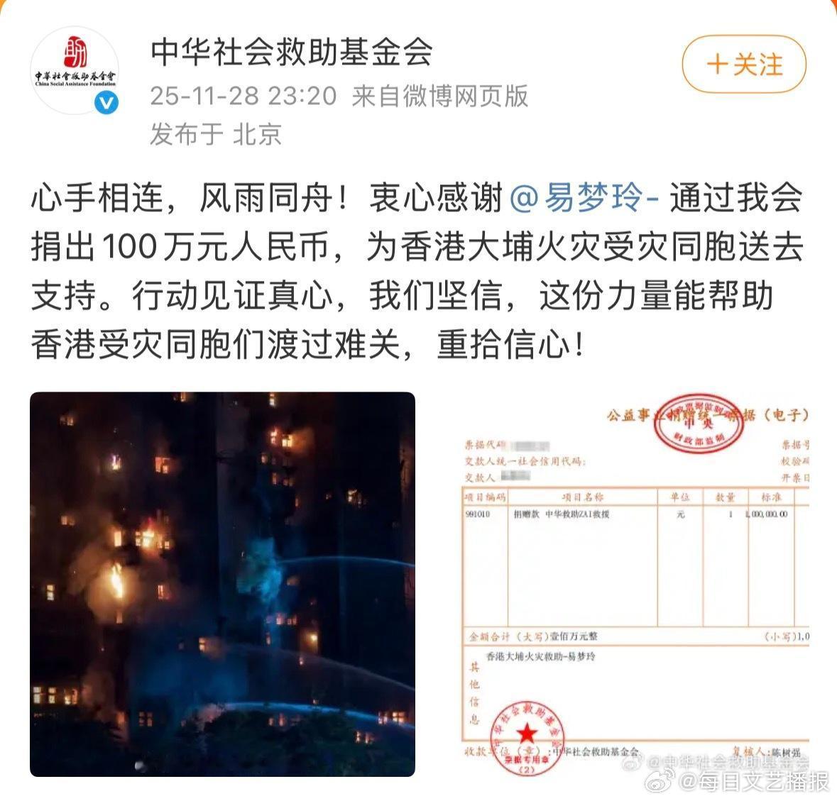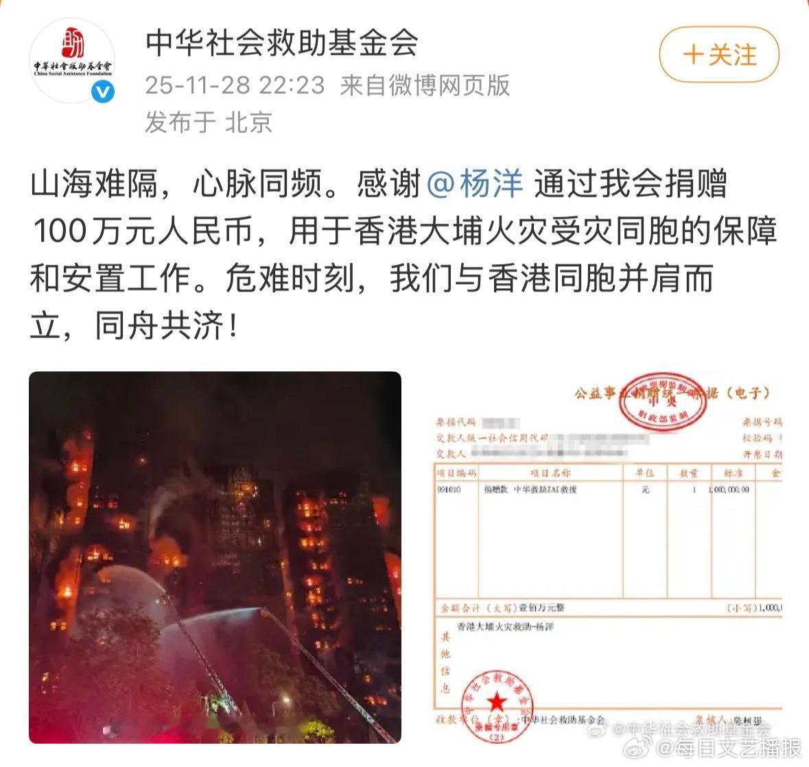 香港大埔宏福苑火灾牵动人心,灾情惨重让人揪心。张靓颖、檀健次、侯明昊等十位艺人,第一时间通过中华社会救助基金会伸出援手,成毅捐出100万、梓渝捐50万,用实际行动传递暖意。没有高调造势,只有真心驰援,这份跨越距离的牵挂,藏着满满的善意与担当。愿善款能帮受灾同胞渡过难关,盼香江早日平复,山河无恙人间皆安。
