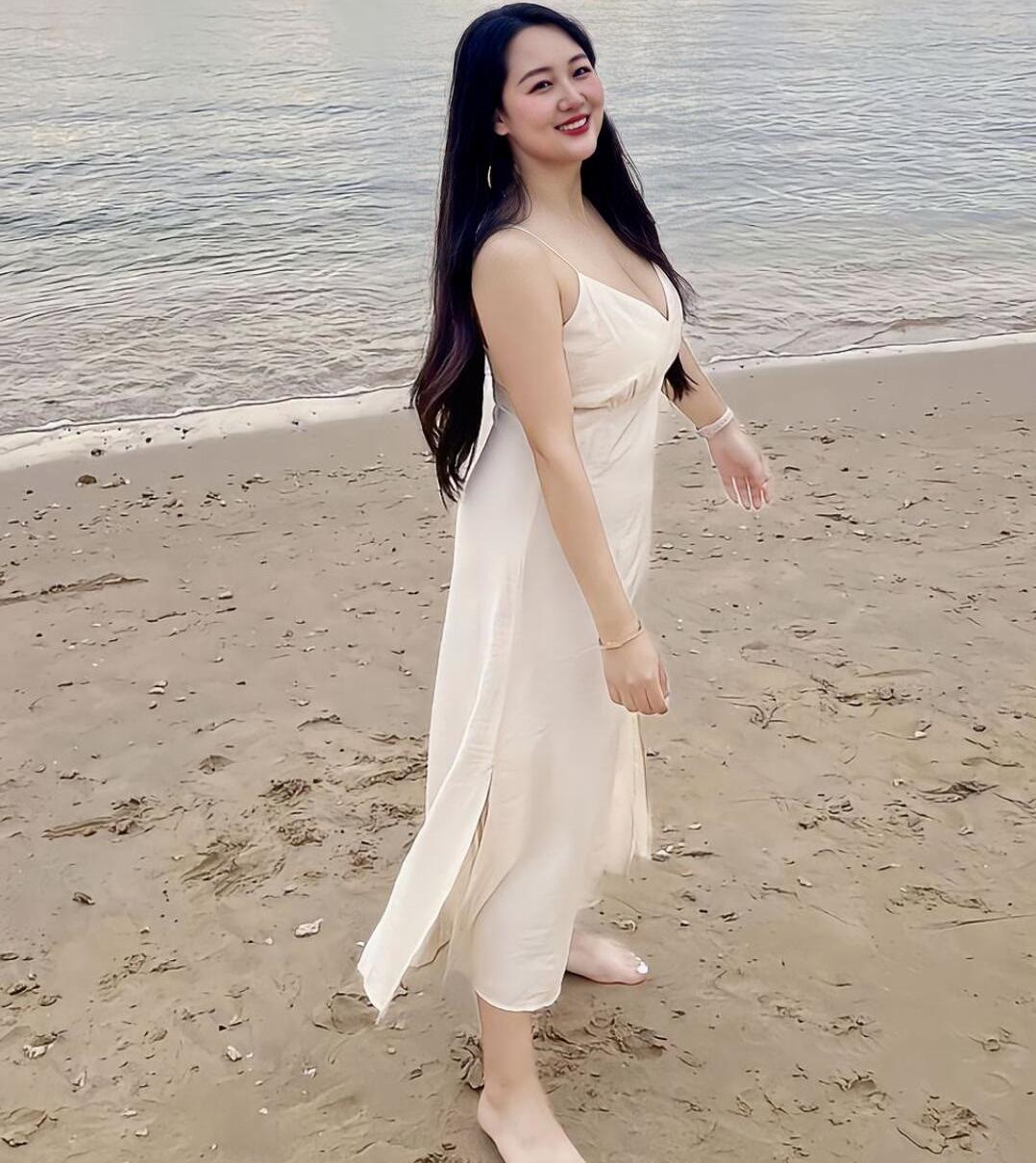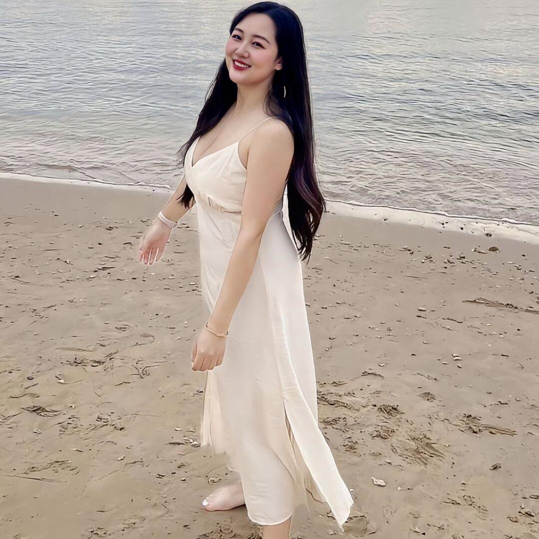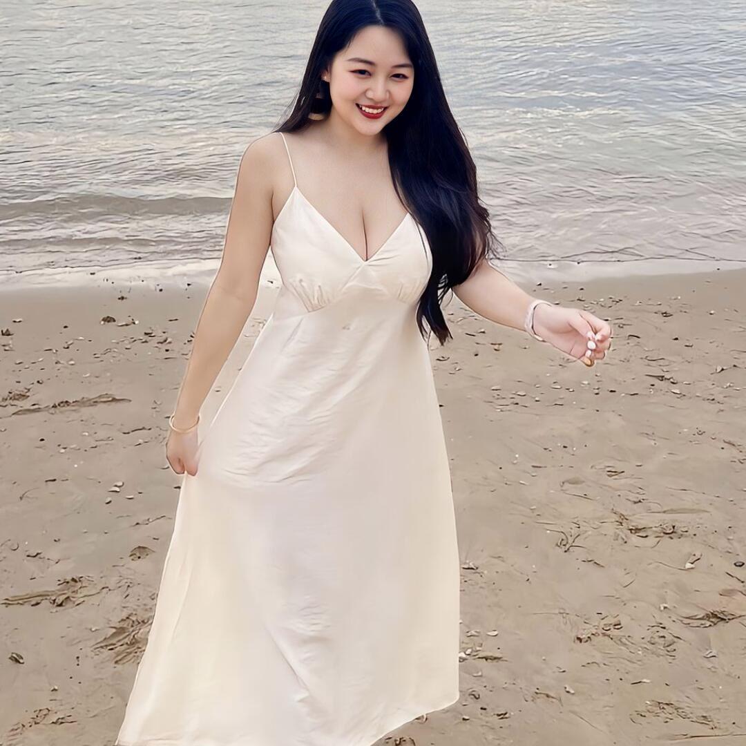 海滩甜妹,奶白缎面吊带裙,温柔纯欲氛围感拉满温柔风吊带长裙甜酷吊带裙纯欲白吊