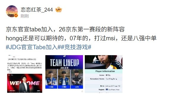 京东官宣tabe加入,26京东第一赛段的新阵容