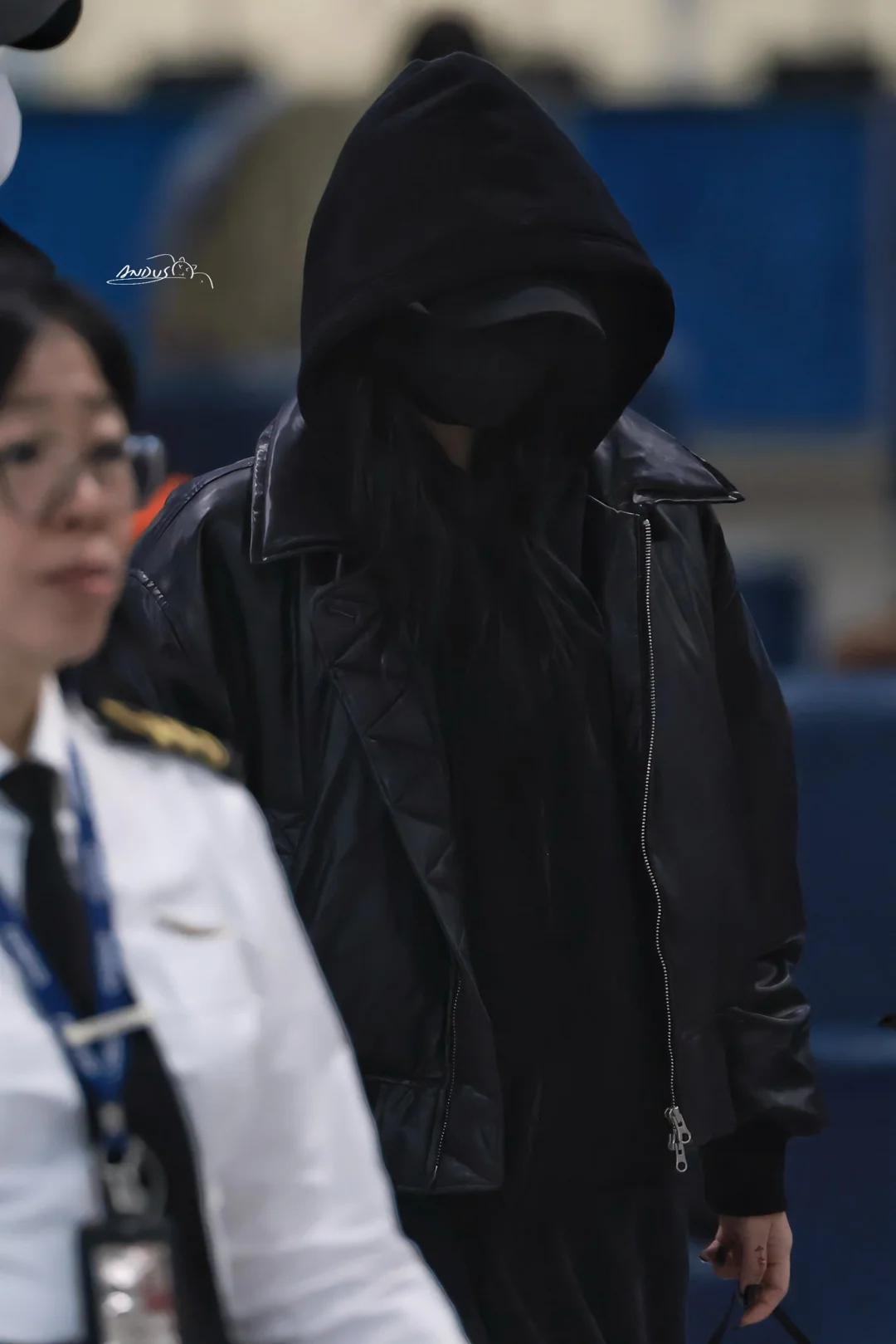 宁艺卓今日到达香港,熟悉的一身黑,廓形卫衣下依旧难掩身材的瘦削,虽未有见全身图,氛围感依旧足! 图源 网络 侵权删 宁艺卓