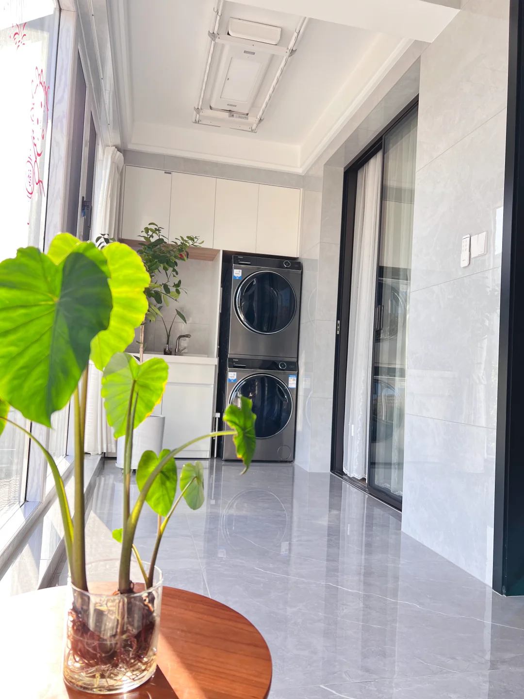 6️⃣地砖从厨房通铺到阳台且阳台推拉门敲掉