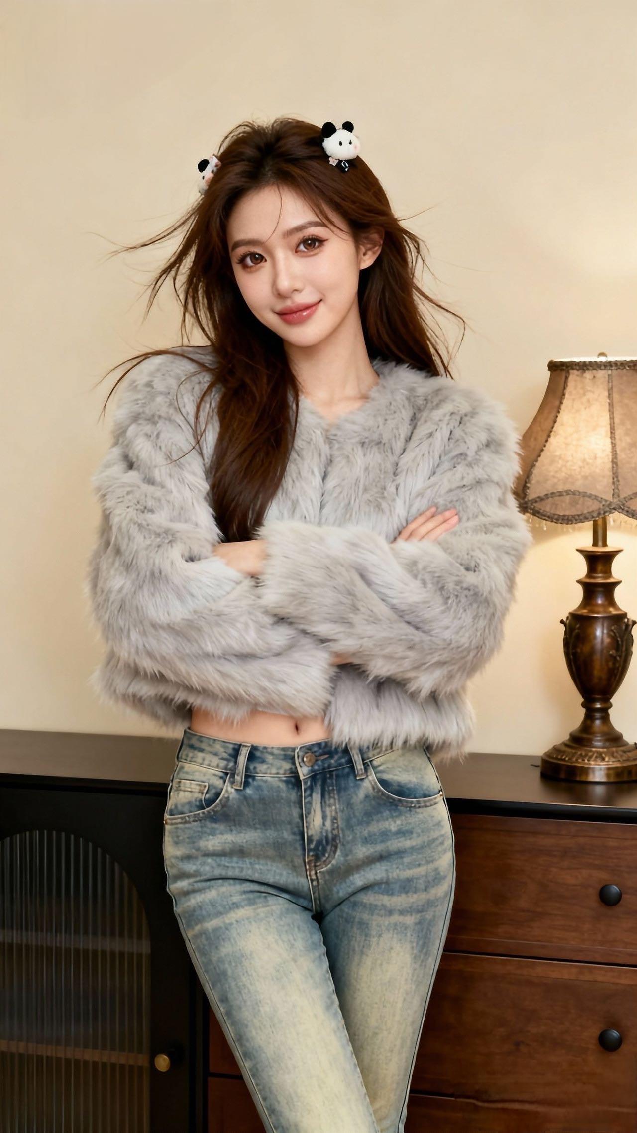 今天这套是“贵气又甜的反差感”!这件浅灰色毛绒短外套软得像抱了团云,裹在身上暖乎乎的,短款刚好露出一小截腰,把甜酷平衡得刚刚好~配了条做旧牛仔长裤,复古感中和了毛绒的华丽,随性又显贵。 头发上别了个小熊猫发夹,圆滚滚的超戳少女心!窝在暖调房间里拍照,连风把头发吹乱都显得慵懒又好看~这种“贵气+俏皮”的混搭太对我胃口了,保暖又时髦,连心情都跟着软乎乎起来~毛绒外套搭配 秋冬毛绒绒穿搭 毛绒外套搭配 蓝色毛绒外套 毛绒感外套 灰色毛绒外套 棕色毛绒外套 美女人像群 高清美女 高雅气质美女 美女欣赏图片